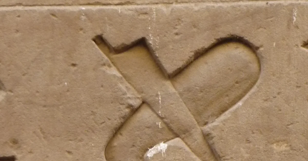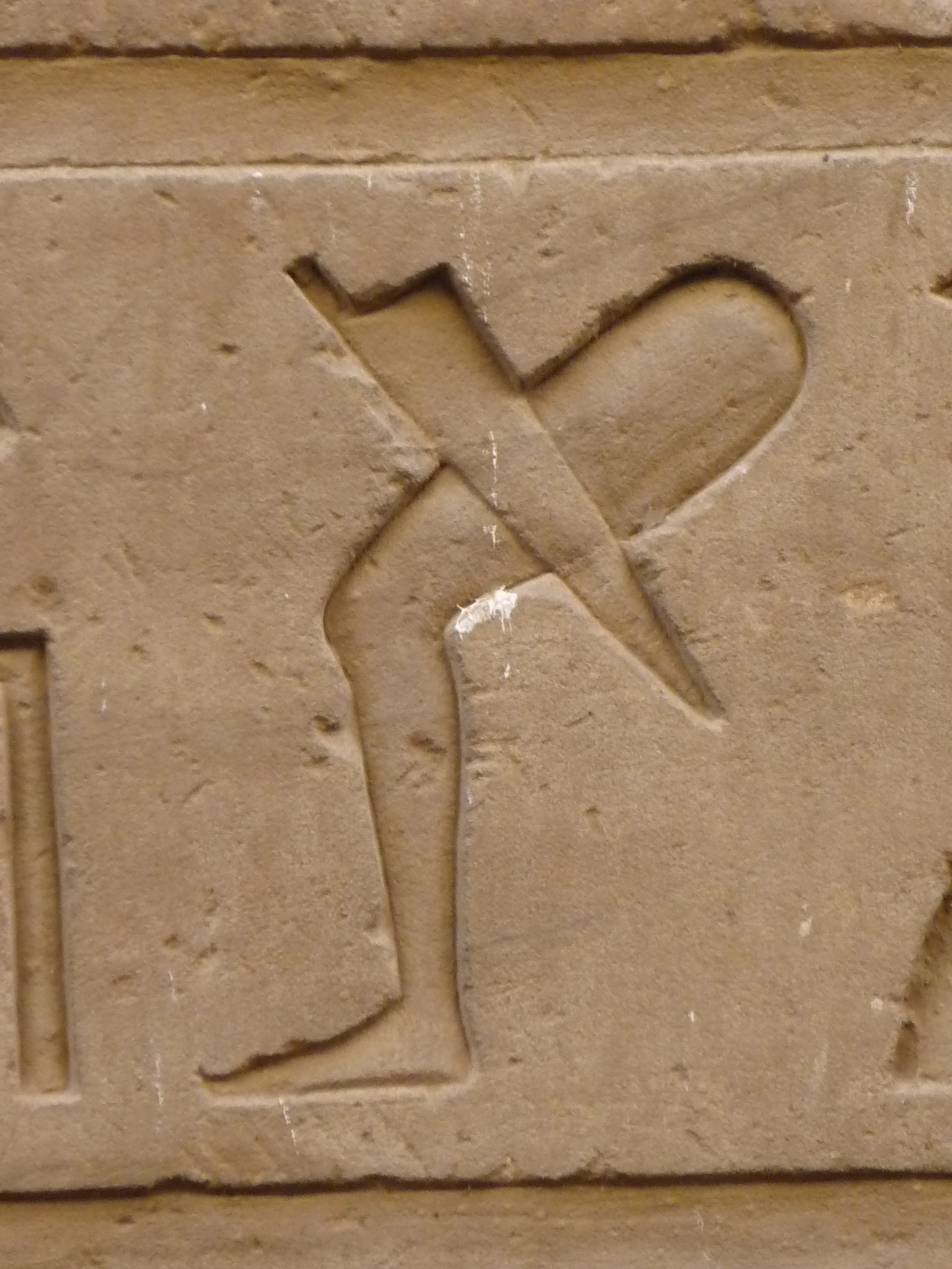 A detail of a relief at the Temple of Edfu, Egypt showing a knife and leg. Ptolemaic Period.