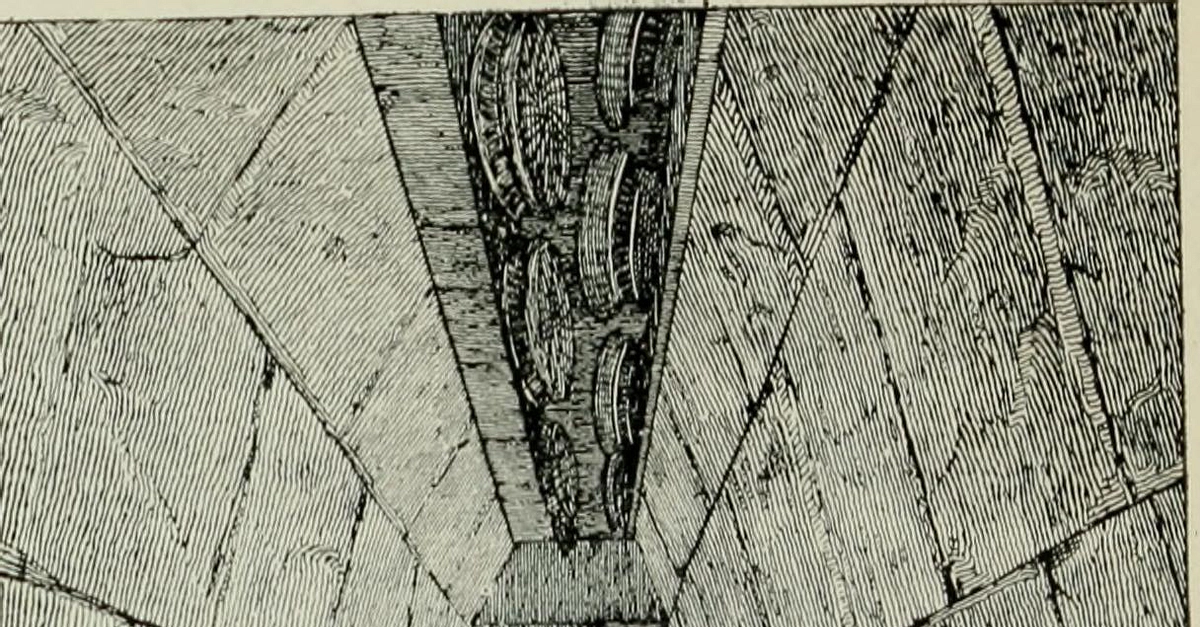 A sketch of the main chamber of the Regolini-Galassi Tomb at Etruscan Cerveteri. 7th century BCE. Inside the chamber were the remains of a female with many precious goods in gold and silver.