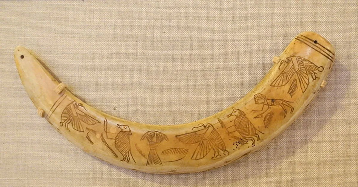 An Egyptian apotropaic knife made from a hippopotamus tusk and designed to ward off evil in a nursery. (Oriental Institute Museum, University of Chicago)