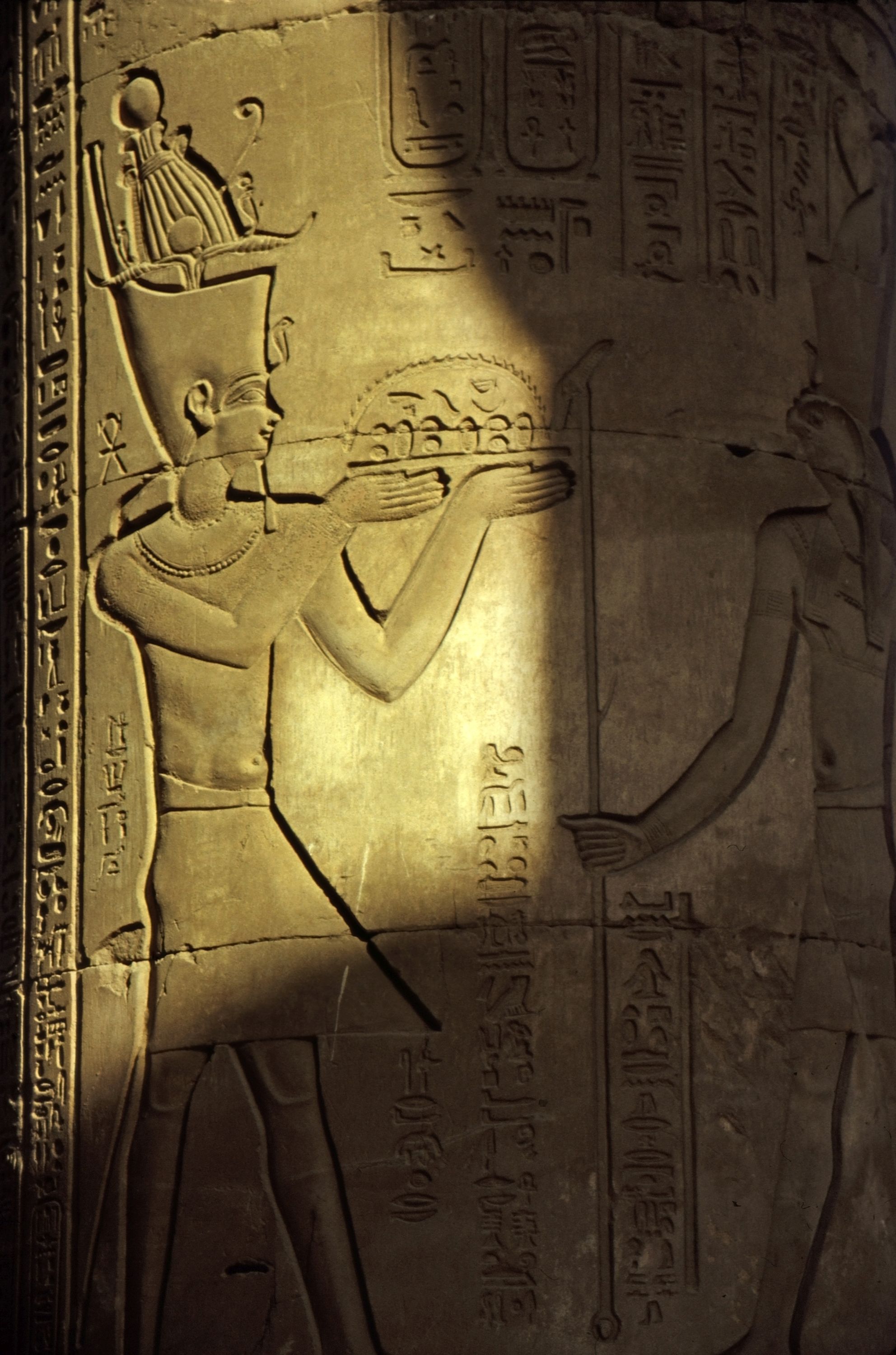 A relief of Ptolemy XIII Theos Philopator on one of the pillars in the courtyard of the Temple at Kom Ombo.