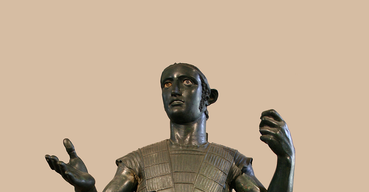 The bronze statue known as the Mars of Todi. Etruscan, probably from Volsinii (Orvieto). 4th century BCE. Height: 1.42 m (Vatican Museums, Rome)