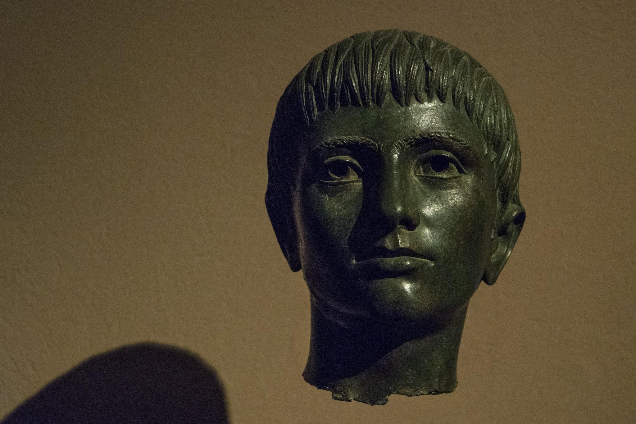 A bronze head of a youth. Etruscan, from Vipsul (modern Fiesole), c. 330 BCE. (Museo Archeologico Etrusco, Florence)