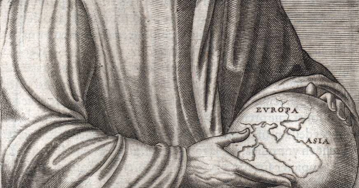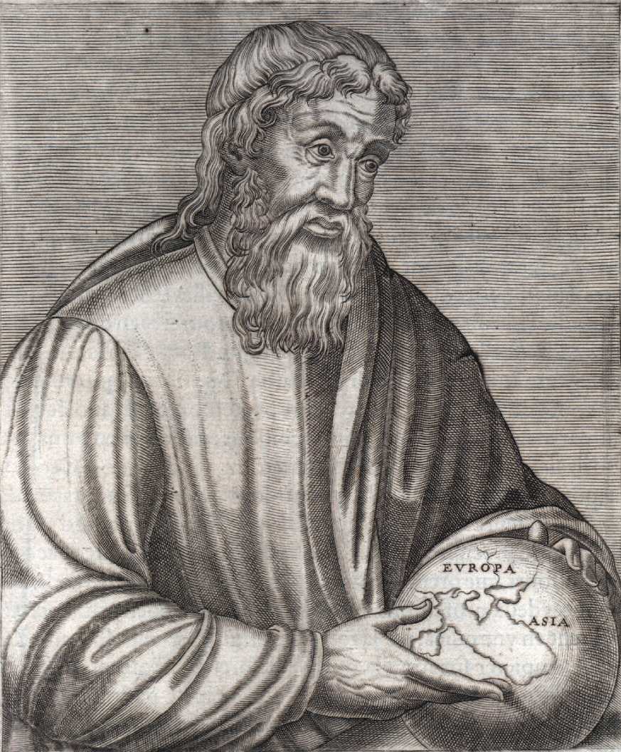 A 16th century CE engraving depicting Strabo, the Greek geographer and historian (c. 64 BCE - c. 24 CE). (Potraits from the Dibner Library of the History and Science of Technology)