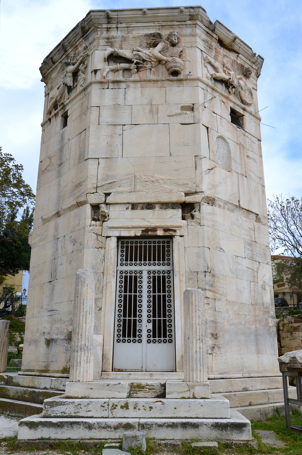 The Tower of the Winds, also called Horologion of Androkinos, is an octagonal Pentelic marble clocktower located in the Roman Agora in Athens. The structure features a combination of sundials, a water clock and a wind vane. It dates back to the late Hellenistic period or possibly to the end of the 2nd century CE.