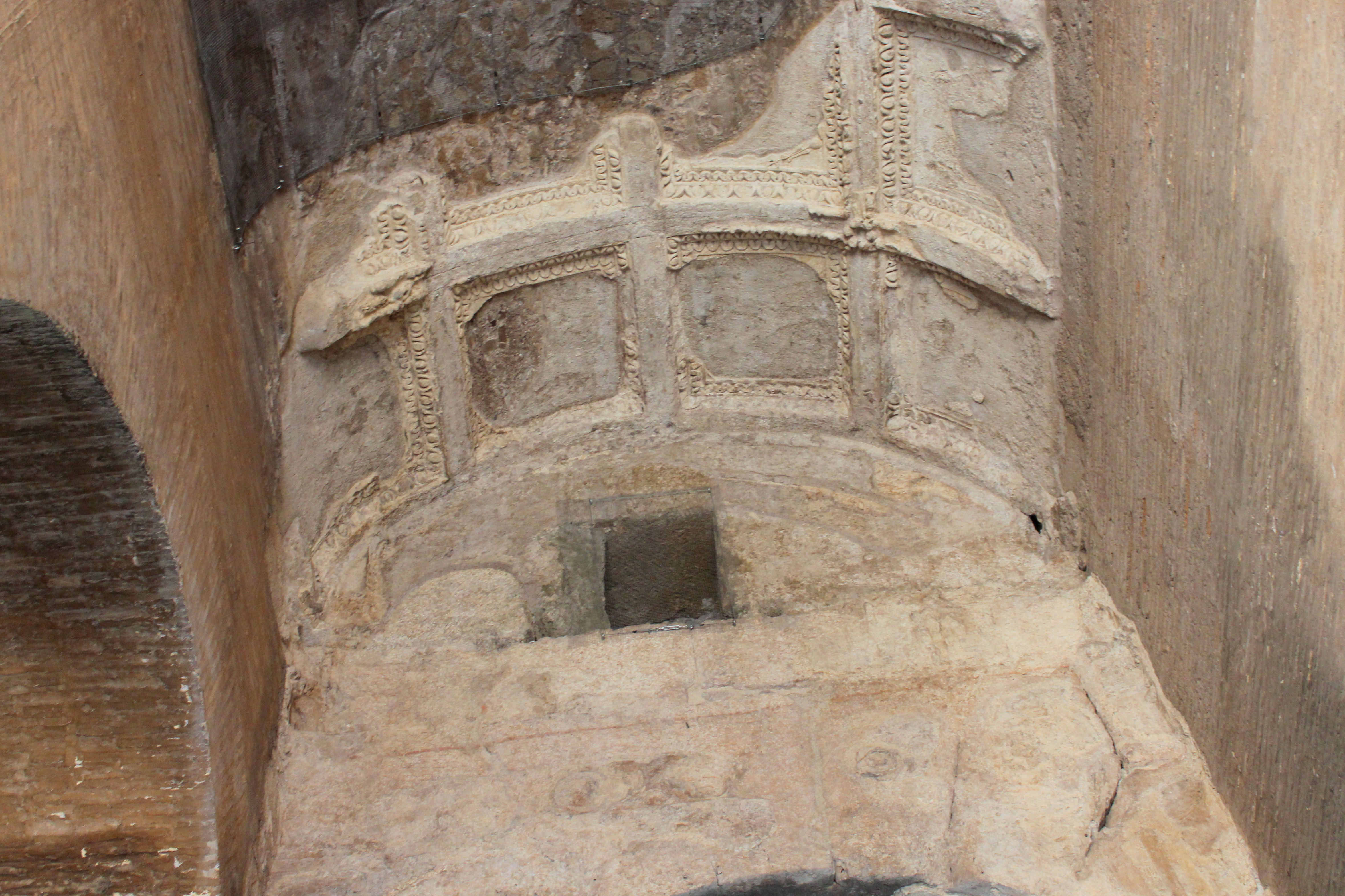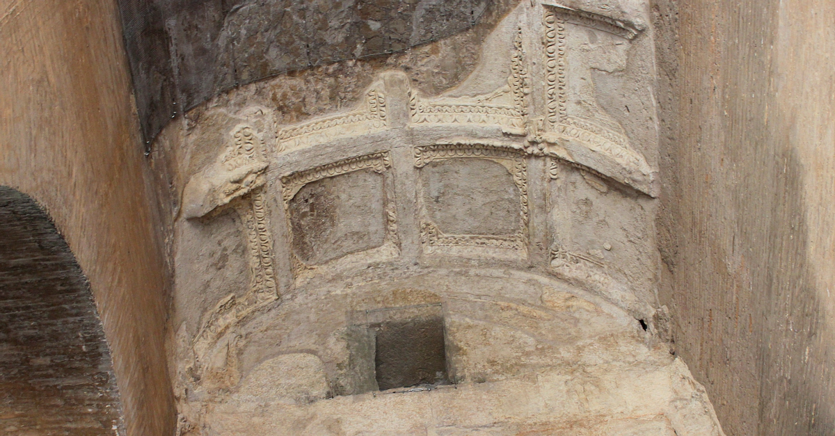 Colosseum, Rome. Remains of once vividly painted stucco on the vault of one of the main entrances. 72-80 CE.