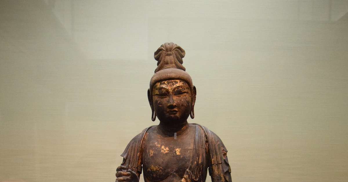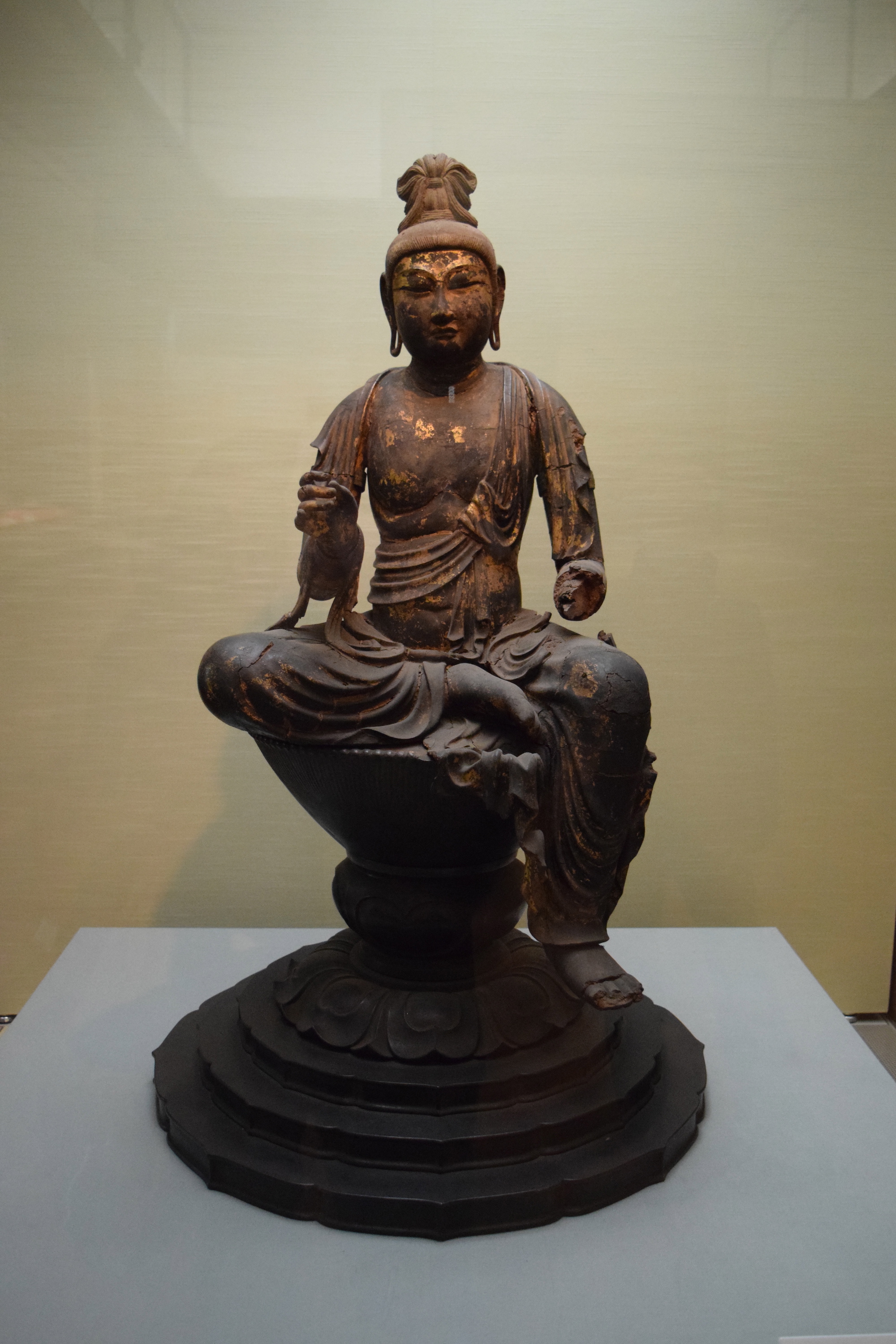 A seated Nikko Bosatsu (Suryaprabha). Lacquered wood with gilding. Nara Period, 8th century CE. Important Cultural Property. (Tokyo National Museum)