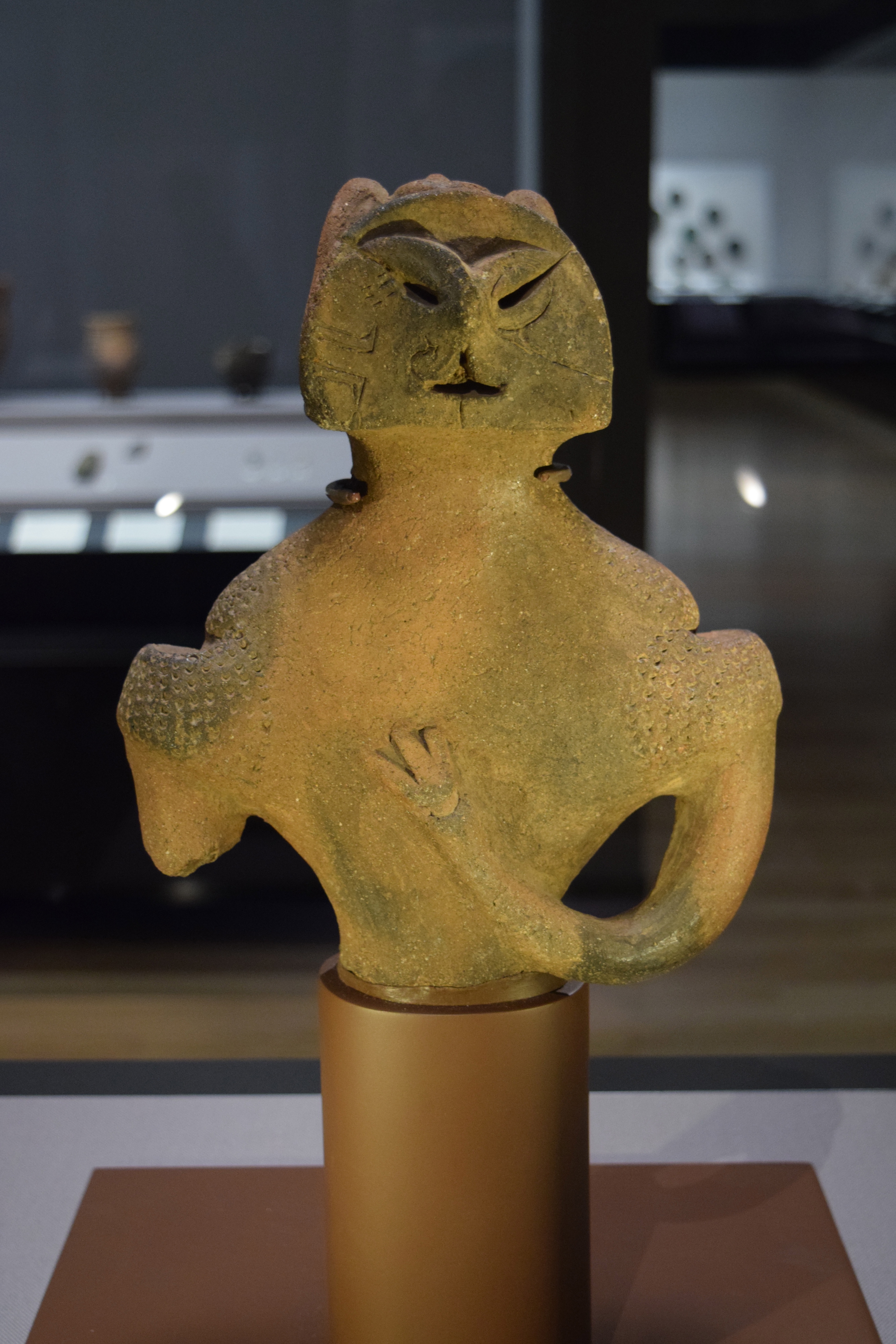 A clay dogu figurine. From Kamikurokoma, Fuefuki-shi, Yamanashi, Japan. Jomon Period, 3000-2000 BCE. (Tokyo National Museum)