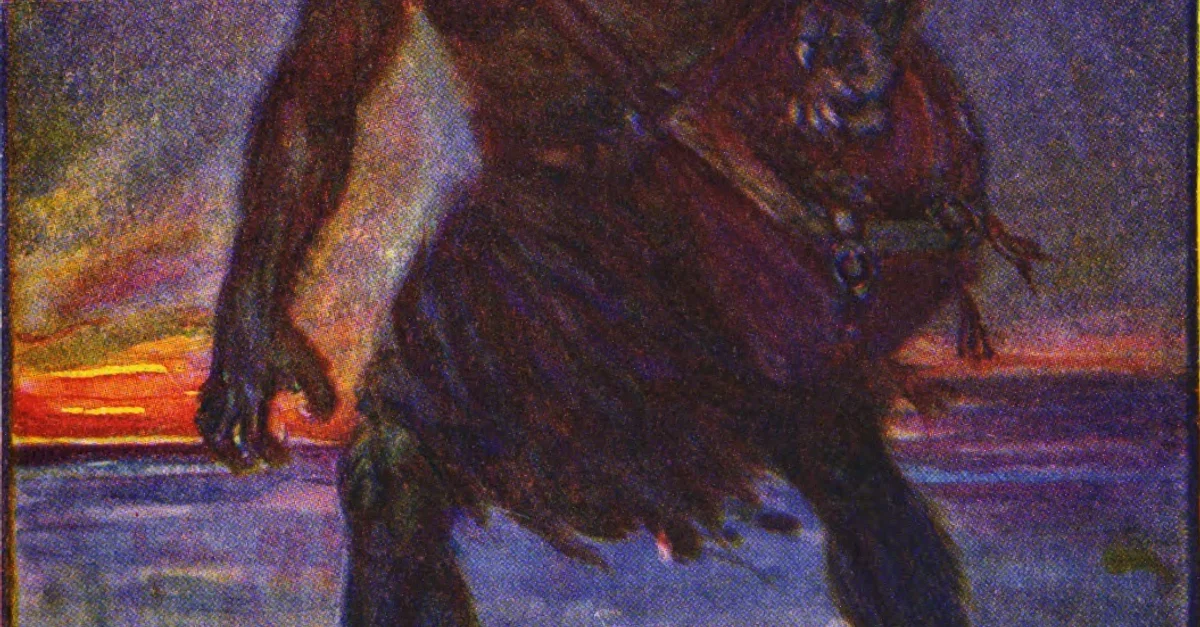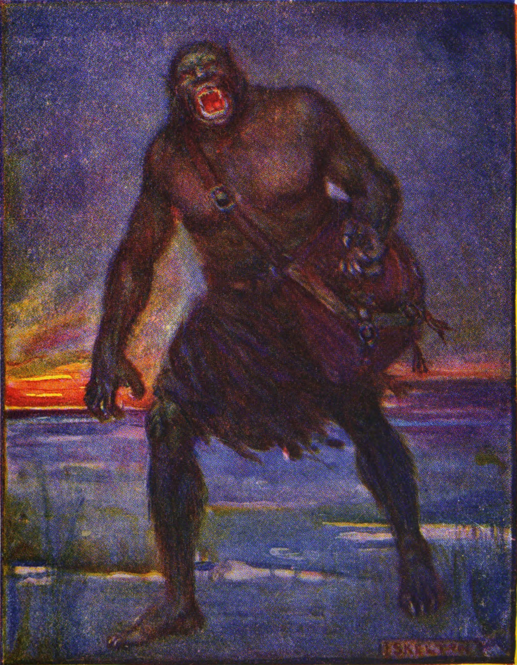 The monster Grendel from the Old English epic poem Beowulf, illustration from Stories of Beowulf by Henrietta Elizabeth Marshall, T.C. & E.C. Jack, 1908.