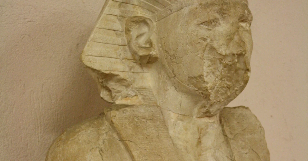Limestone statue (seated) of Amenemhat III, XII Dynasty, Medinet Madi, Temple of Isis-Thermutis. (Egyptian Museum, Castello Sforzesco, Milan)