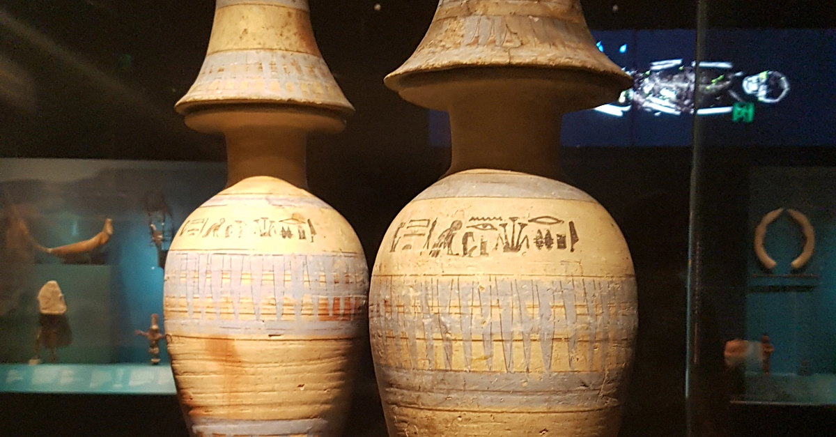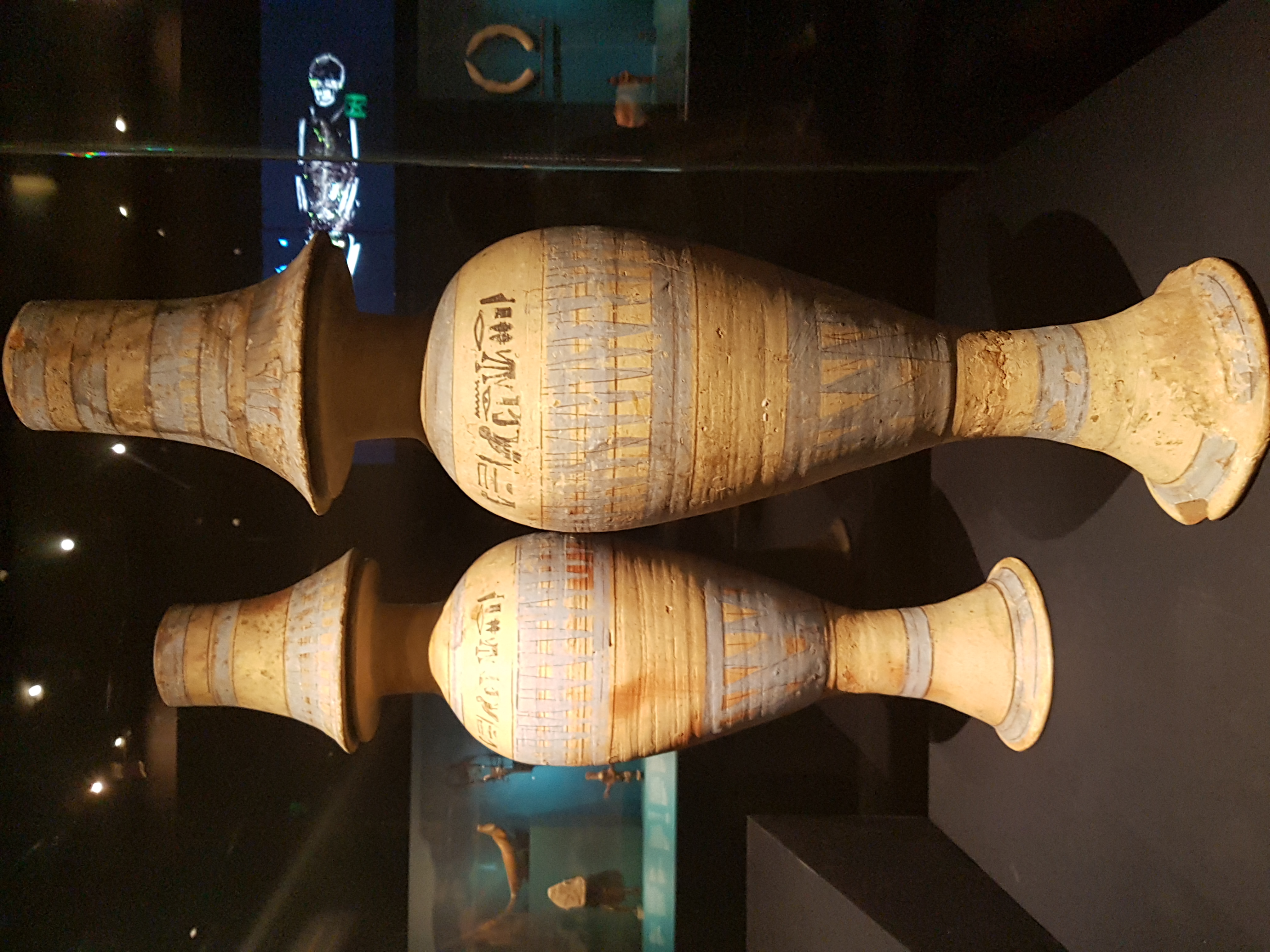 Egyptian wine jars, 18th-19th Dynasties, about 1550-1186 BCE. Provenance unknown. The British Museum, (photo taken at The Powerhouse Museum, Sydney, Australia) Originally part of a set of at least four jars, these two vessels belonged to the funerary equipment of Lady Nedjmet. The inscription on the jars claim that they were filled with Nile Delta wine, a luxury beverage that was favoured during feasts and celebrations.