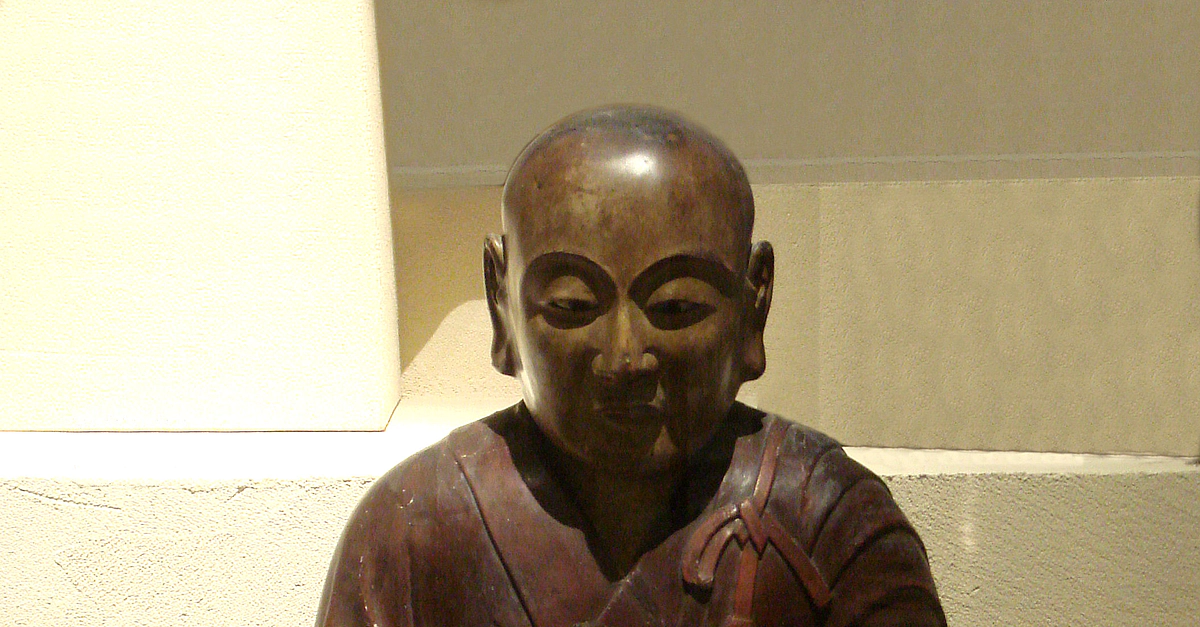 A wooden figure representing Kukai, aka Kobo Daishi (774-835 CE), a scholar, poet and monk who founded Shingon Buddhism in Japan. (Guimet Museum, Paris)