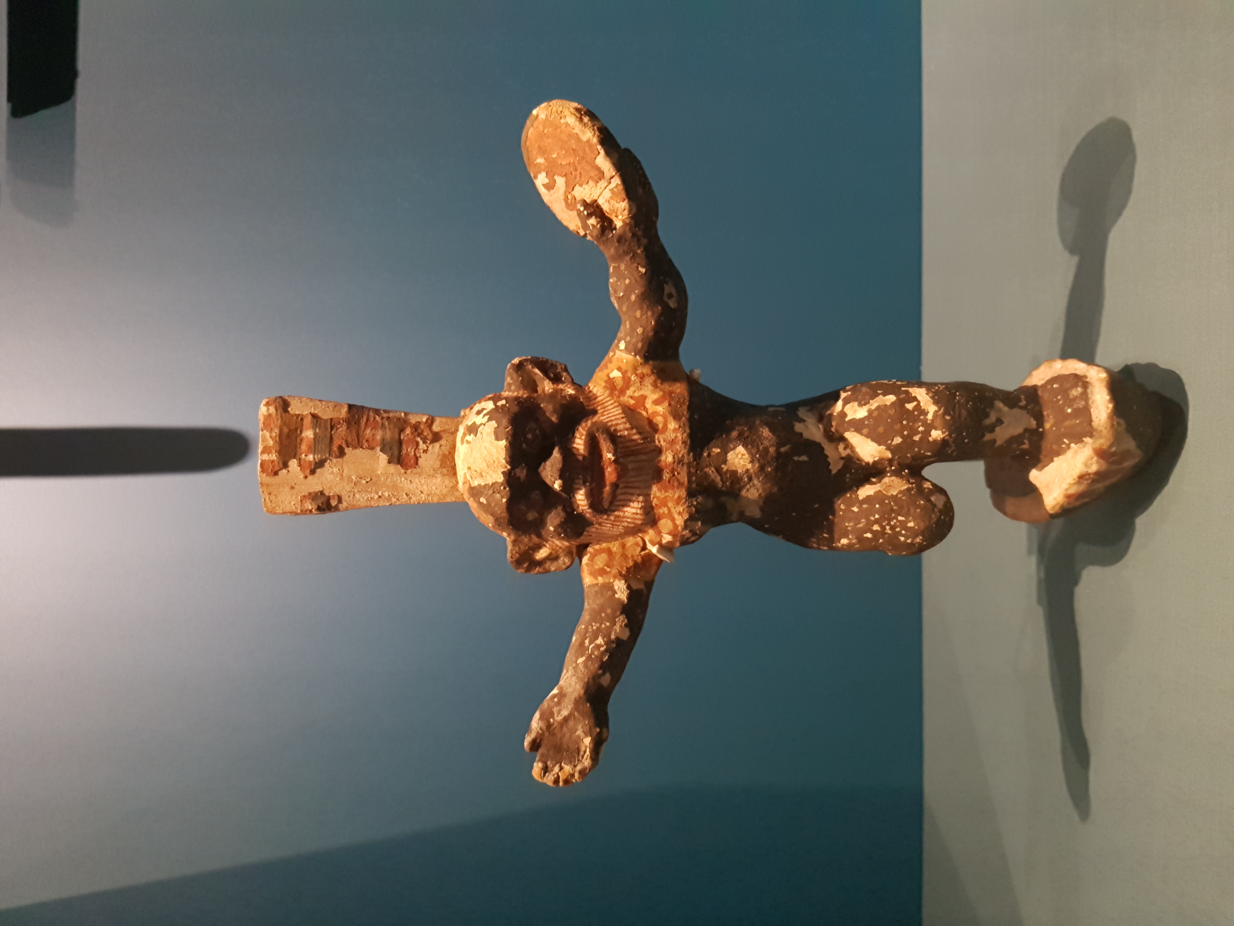 Statue of Bes. Probably late 18th Dynasty, about 1300 BCE. Said to be from Akhmim, Egypt. From The British Museum, (photo taken at The Powerhouse Museum, Sydney, Australia) Several gods were associated with music, including Bes, the protector of the household and family. He is usually depicted as dancing and playing the tambourine. Sticking his tongue out and hammering his drum, he would have repelled evil forces.