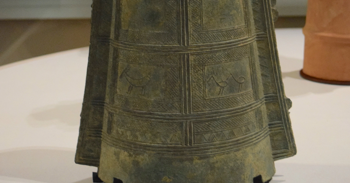 A bronze Japanese dotaku or ritual bell. From Nakagawa (Akugaya), Hosoe-cho, Kita-ku, Hamamatsu-shi, Shizuoka, Japan. Yayoi Period, 1st-3rd century CE. (Tokyo National Museum)