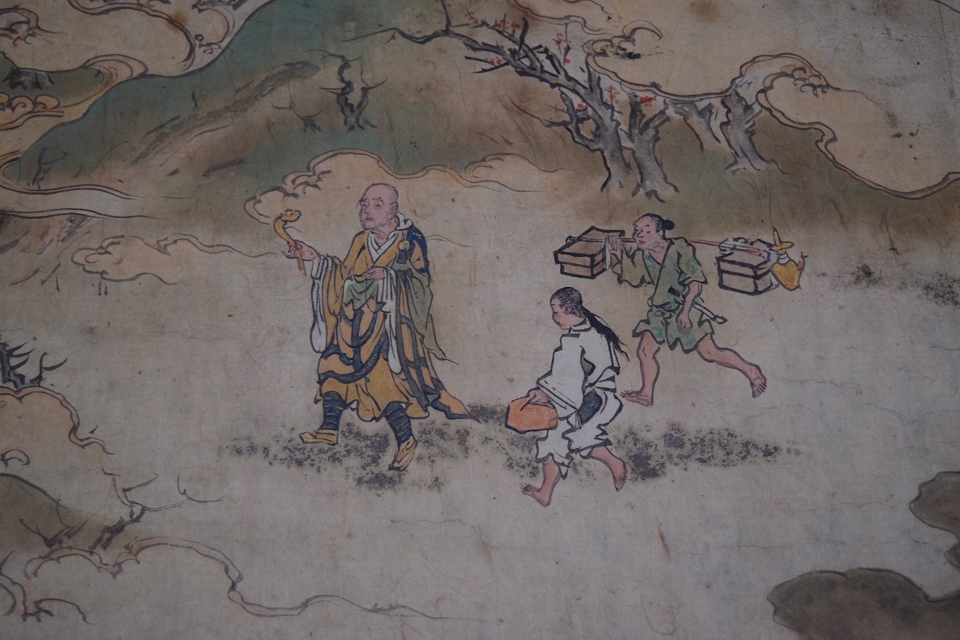 A scene from an illustrated scroll of the legends concerning Hachiman. Colour on paper. 14th century CE. (Tokyo National Museum)