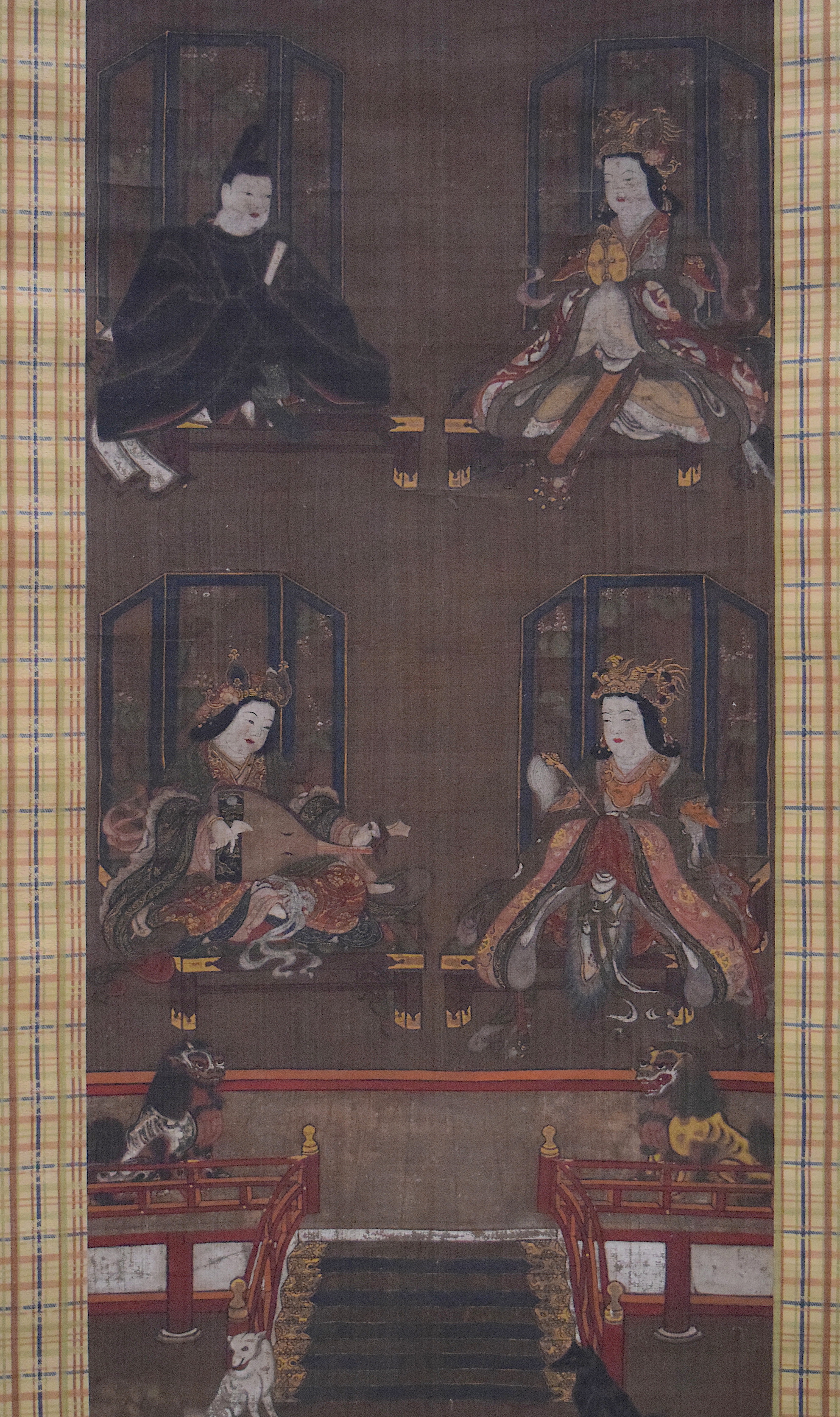 A painted silk scroll depicting the four gods of Mount Koya. 16th century CE. (Tokyo National Museum)