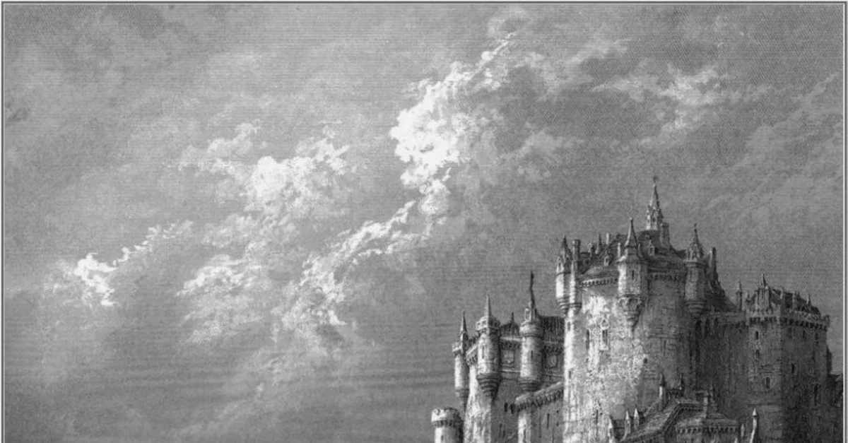 A 19th century CE engraving depicting Camelot from the original edition of Tennyson's 'Idylls of the King' on the Arthurian legends.