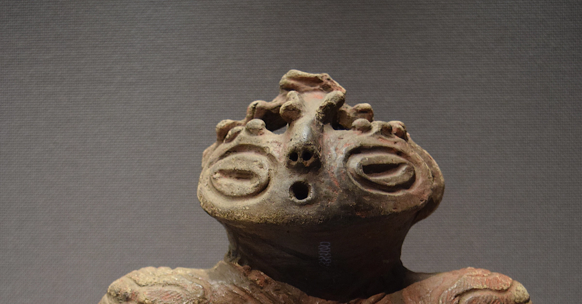 A Jomon stone figurine or gangu. Komukai, Nanbu-cho, Aomori, Japan. Jomon Period, 1000-400 BCE. (Tokyo National Musuem)