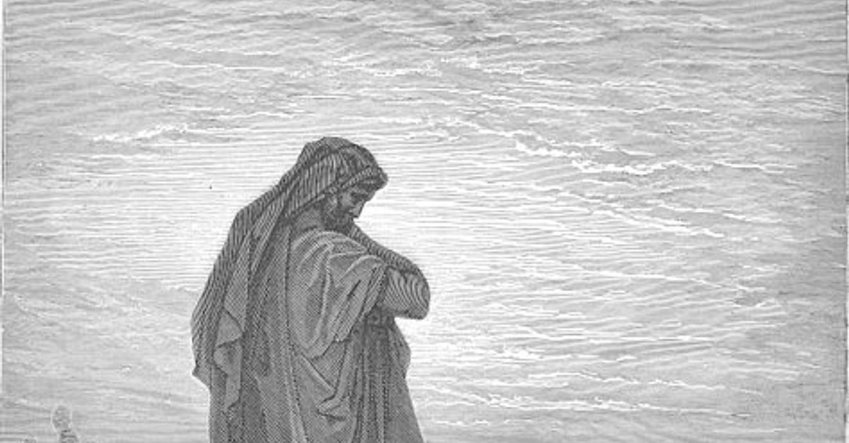A 19th century CE artist's impression of the prophet Amos looking over the wickedness of Israel in grief.