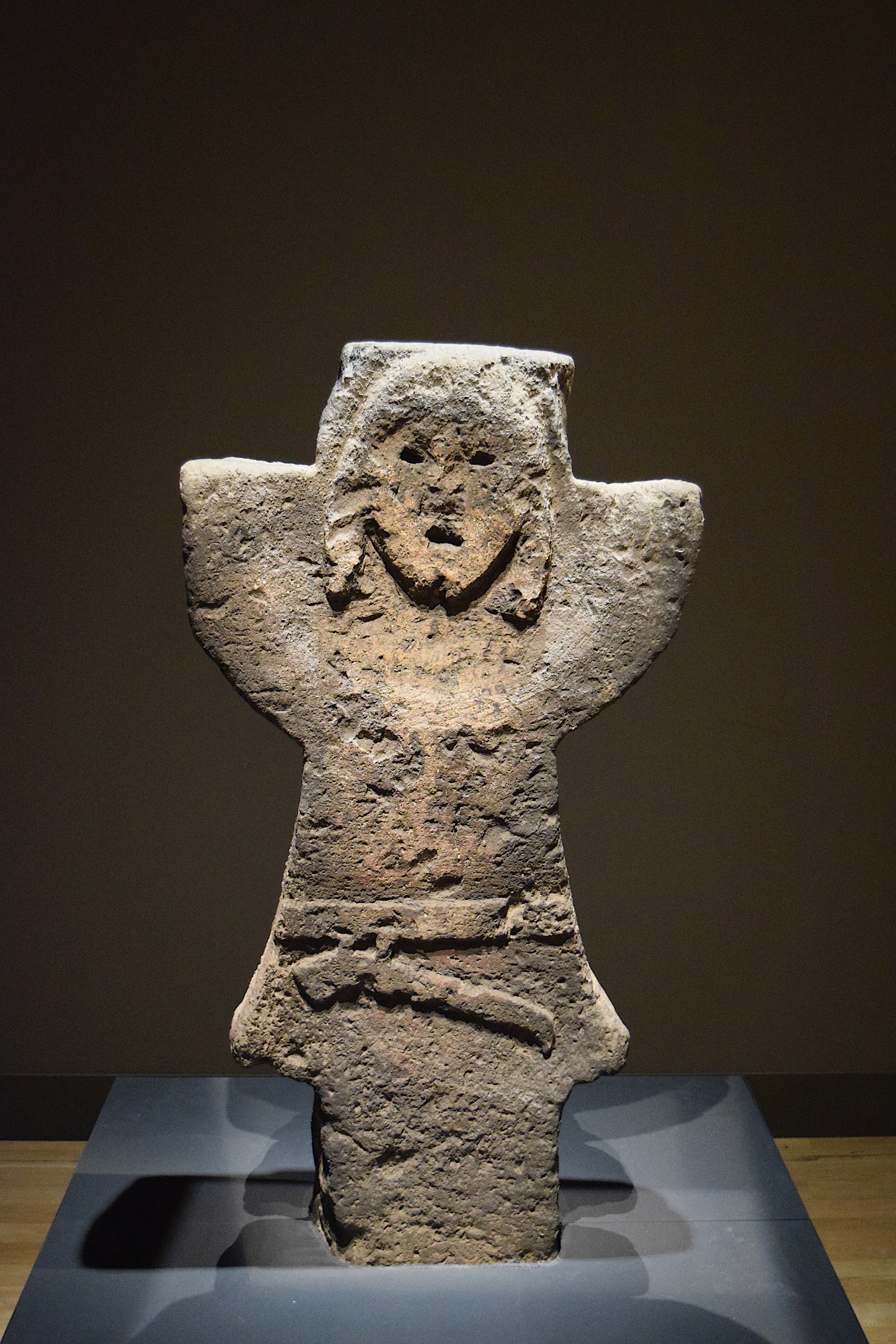 A warrior sekijin or tomb marker. Iwatoyama Tumulus, Yoshida, Fukuoka, Japan. Kofun Period, 6th century CE. Important Cultural Property. (Tokyo National Museum).