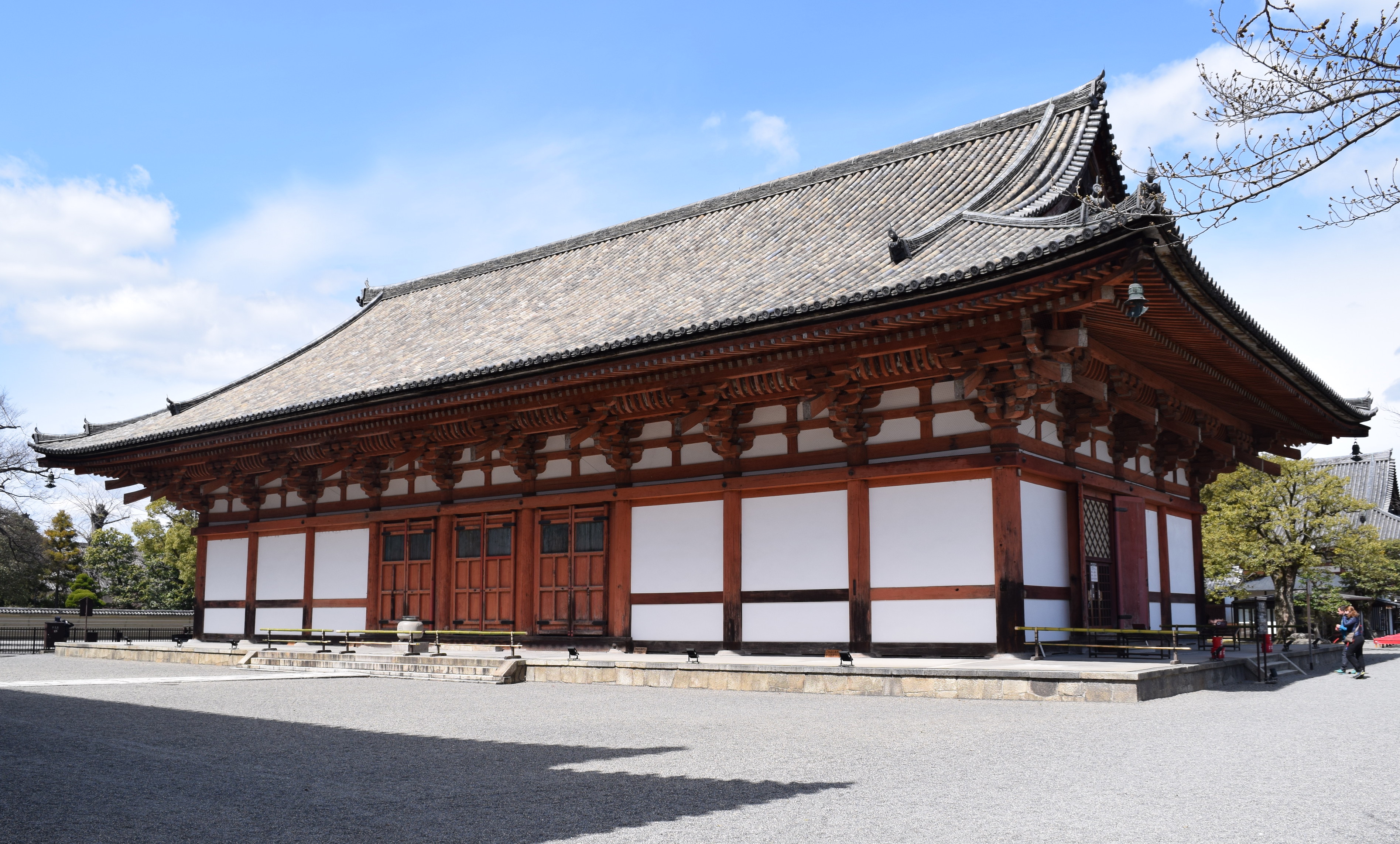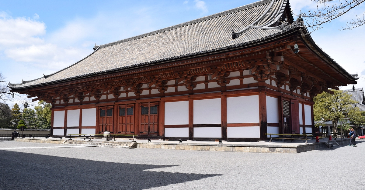The Kodo or Lecture Hall of the To-ji temple complex near Heiankyo (Kyoto), Japan. The original building was constructed in 835 CE but the present version, copying the original, dates to 1491 CE. Listed as an Important Cultural Asset of Japan.