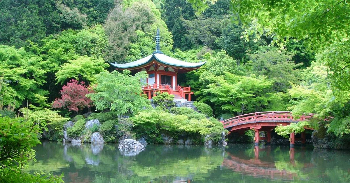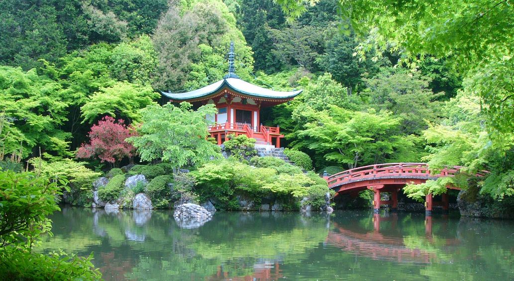 The Benten Pond of the Daigoji Buddhist temple complex at Kyoto, Japan. The site was founded in 874 CE.