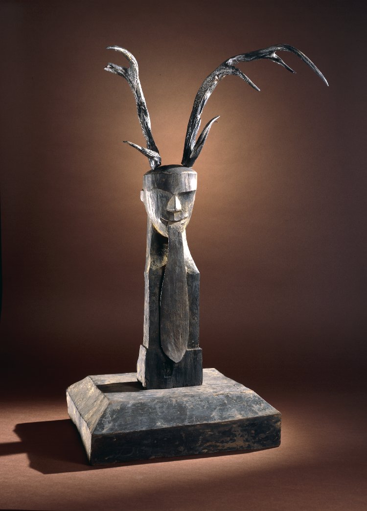 A wood and lacquer guardian figure from the Eastern Zhou Dynasty, China. c. 4th century BCE. Height: 76.2 cm. (British Museum, London)