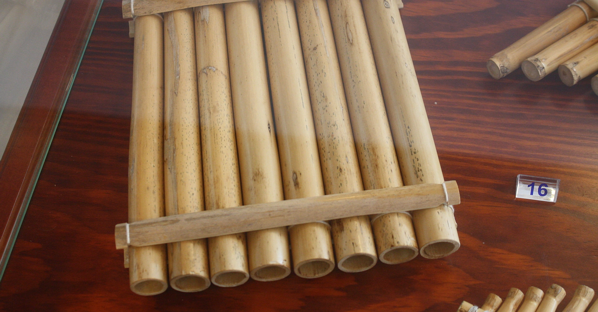 A modern reproduction of the most common form of panpipes played by the ancient Greeks (Museum of Ancient Greek Musical Instruments, Katakolon, Greece).
