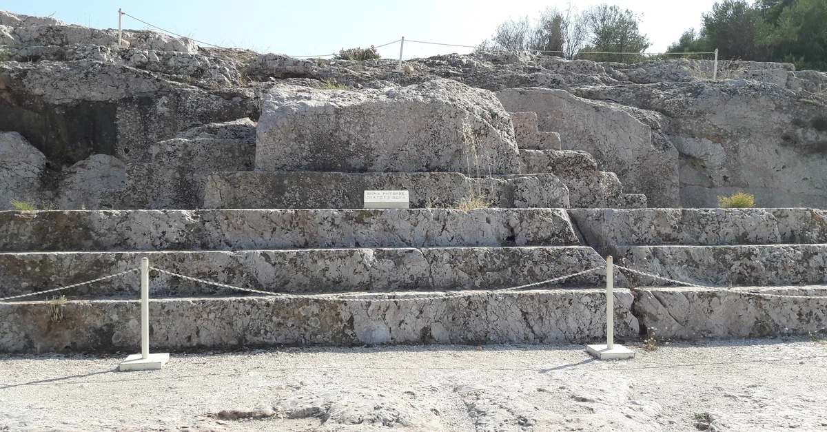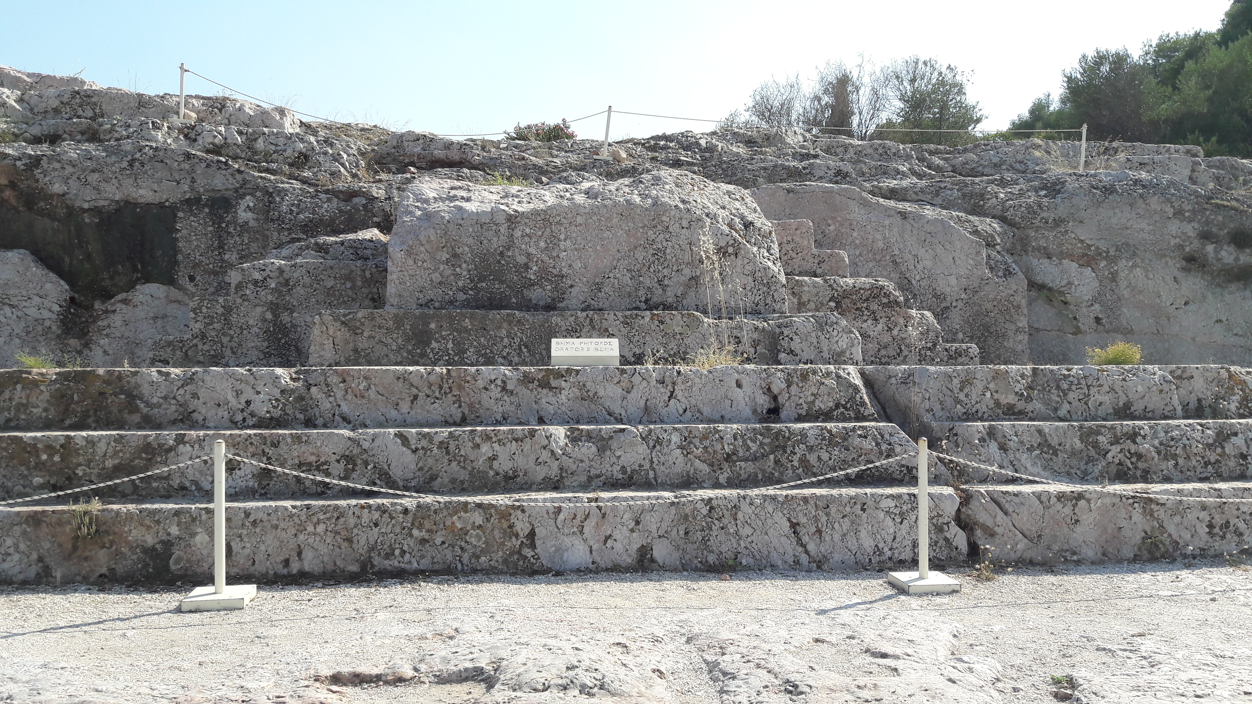 Stone cut steps leading up to the speaker's platform at the Athenian Assembly on Pynx
