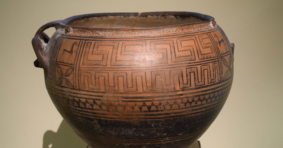 A krater from Melos with geometric design. By the Rottiers painter, 8th century BCE. (Pushkin Museum, Moscow)