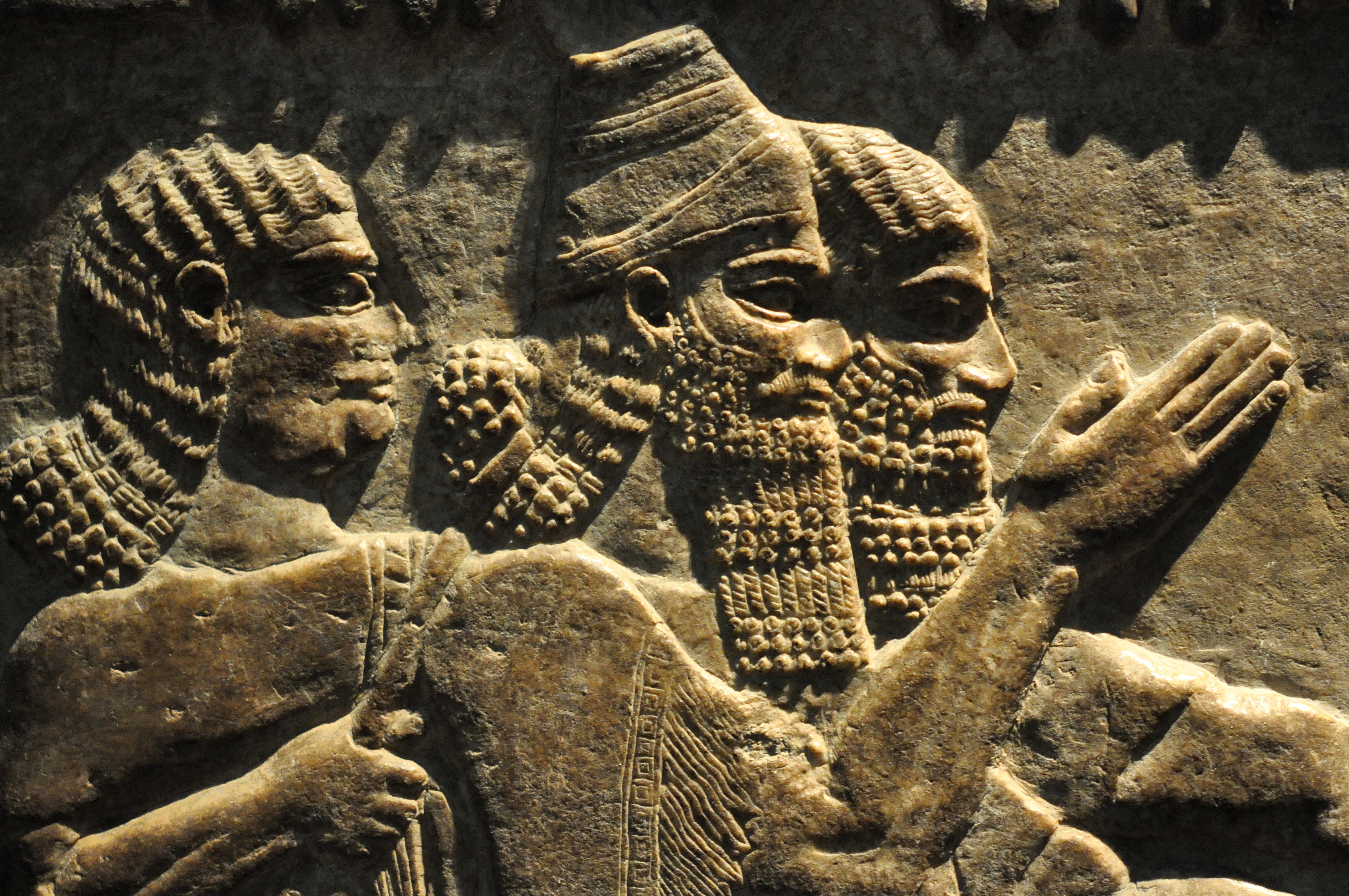 Detail of a gypsum wall relief showing the Assyrian king Tiglath Pileser III from the South-West palace at Nimrud, Mesopotamia, modern-day Iraq, Neo-Assyrian Empire, 745-727 BCE.