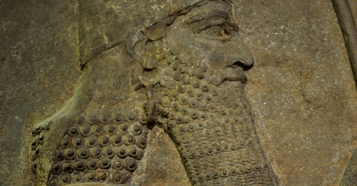 Detail of a gypsum wall relief showing the Assyrian King Sargon II. Neo-Assyrian Period, 710-705 BCE. From the palace of Sargon II at Khorsabad, Mesopotamia, Modern-day Iraq. (The British Museum, London).