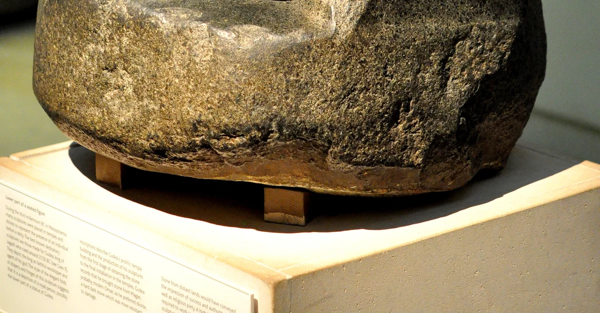 The lower half of this carved and polished granite statue has survived. It probably represents a seated figure of Gudea, ruler of Lagash. Lagash II period, circa 2150 BCE. From Seleucia ad Tigrim (5 miles south-west of Seleucia), Mesopotamia, modern-day Iraq. (The British Museum, London)