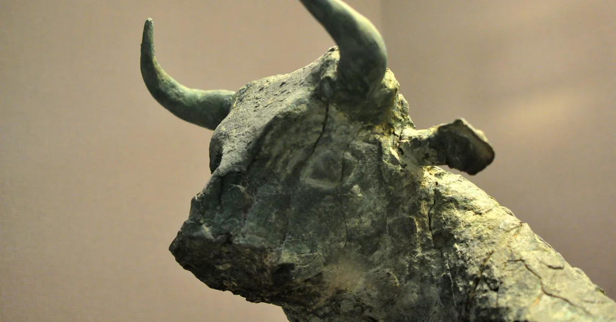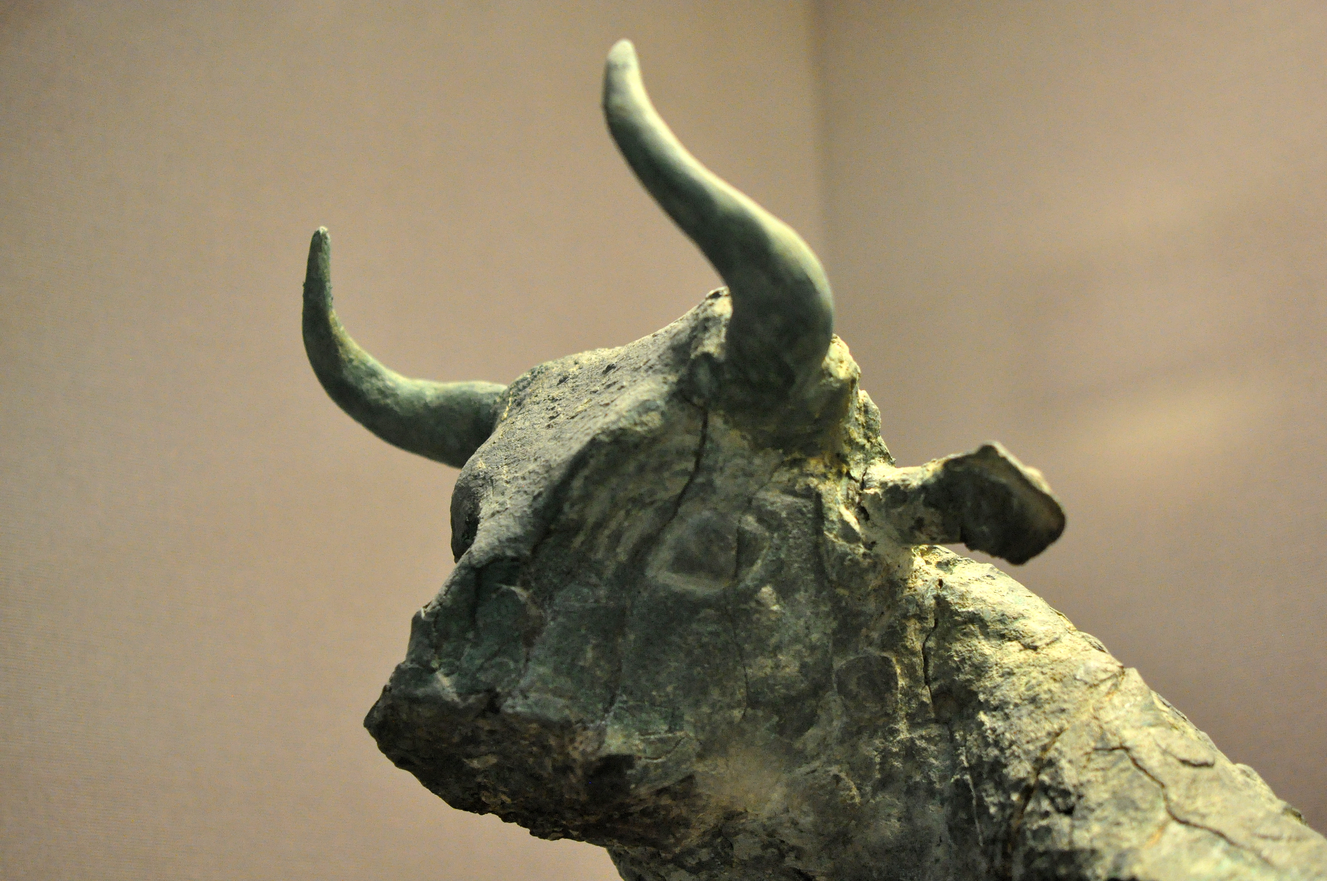 This head is part of a copper alloy bull in the round. This is the best preserved bull of four similar bulls found and it is the only one which kept its head. Early Dynastic Period, circa 2500 BCE. From the Temple of Ninhursag at Tell Al-Ubaid, Southern Mesopotamia, modern-day Iraq. (The British Museum, London)