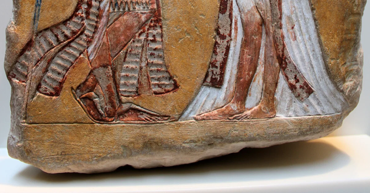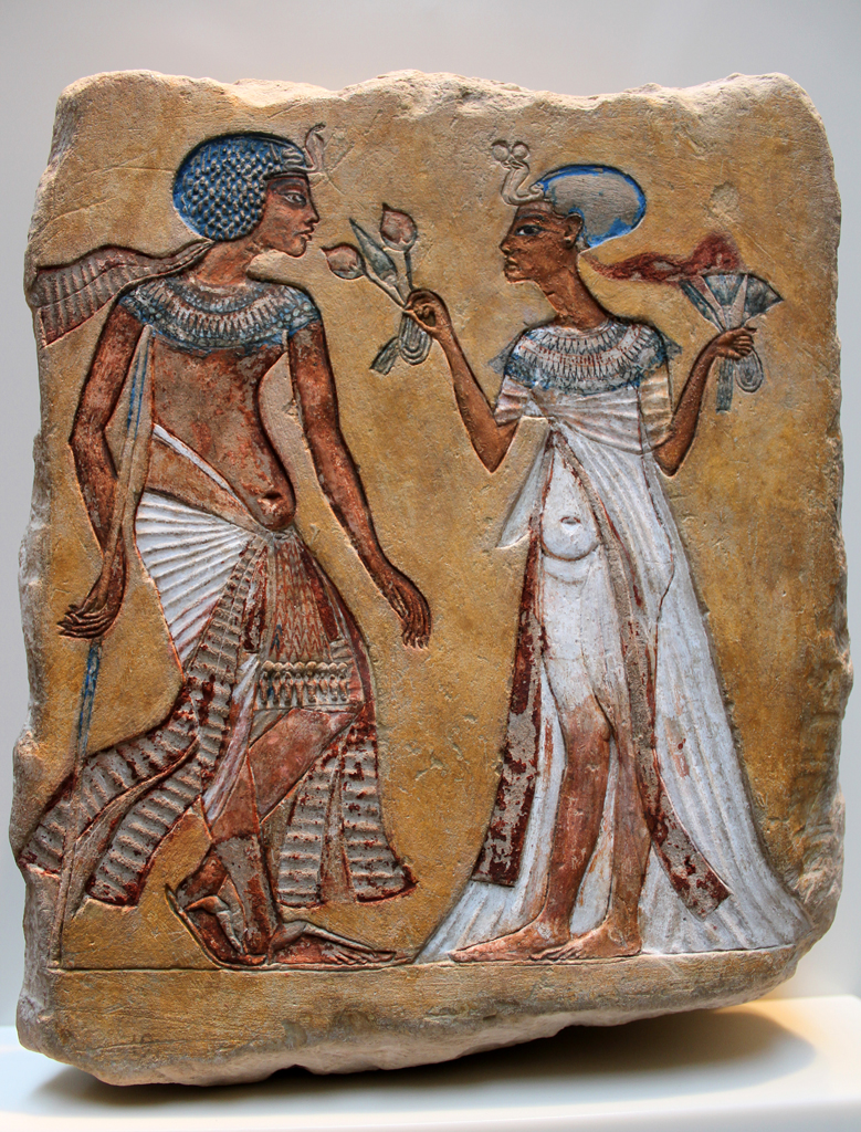 Painted limestone relief, possibly depicting Akhenaten and Nefertiti, from Amarna, 18th Dynasty, c. 1335 BCE.