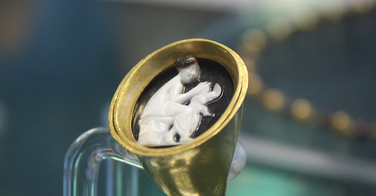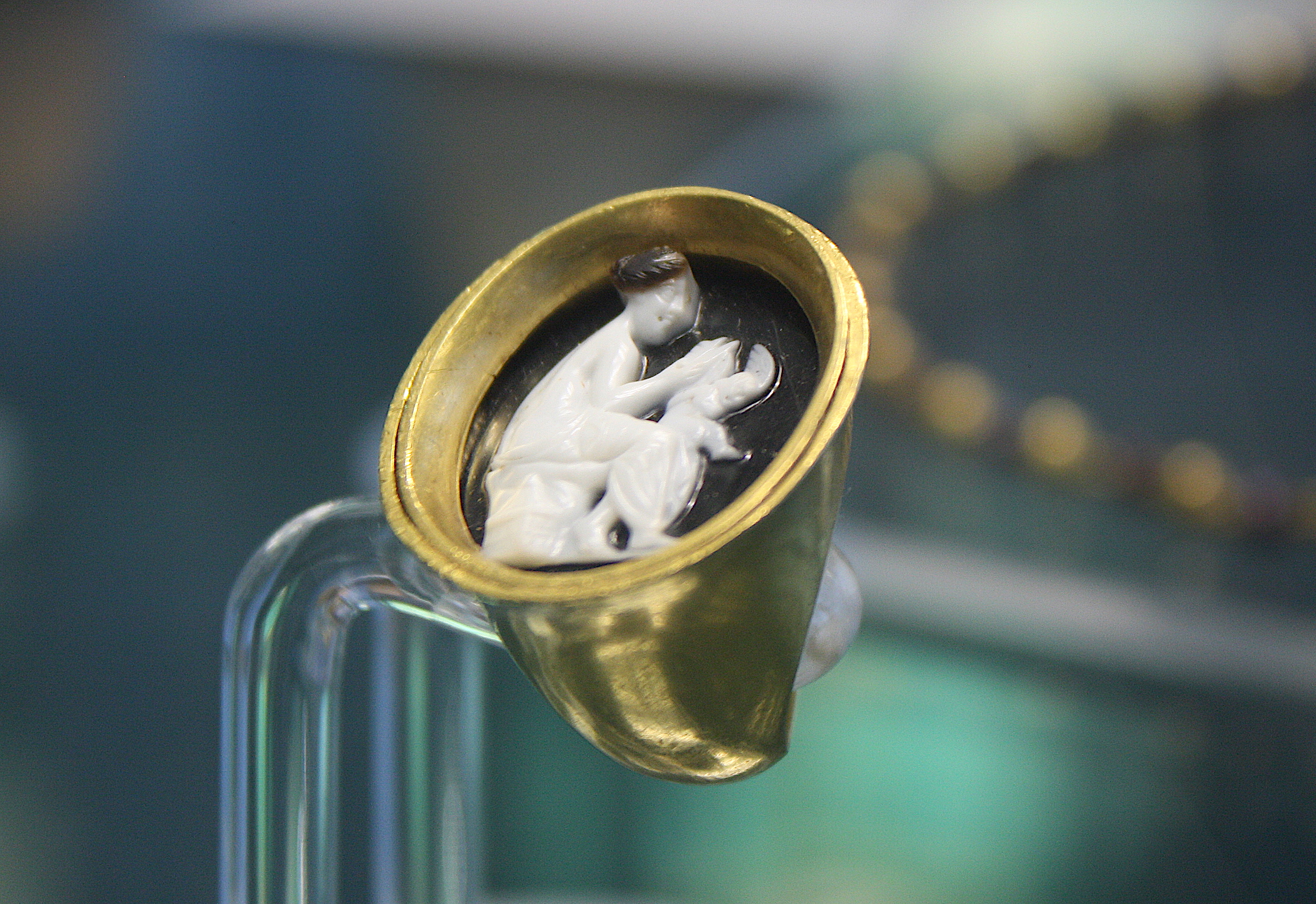 A gold cameo ring depicting Aphrodite and Eros. Acropolis of Herakleia, southern Italy. 1st century BCE. (Archaeological Museum of Siritide, Policoro, Italy)