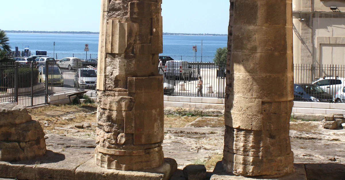 Two columns, all that remains of an Archaic temple dedicated to Poseidon at Tarentum, southern Italy.