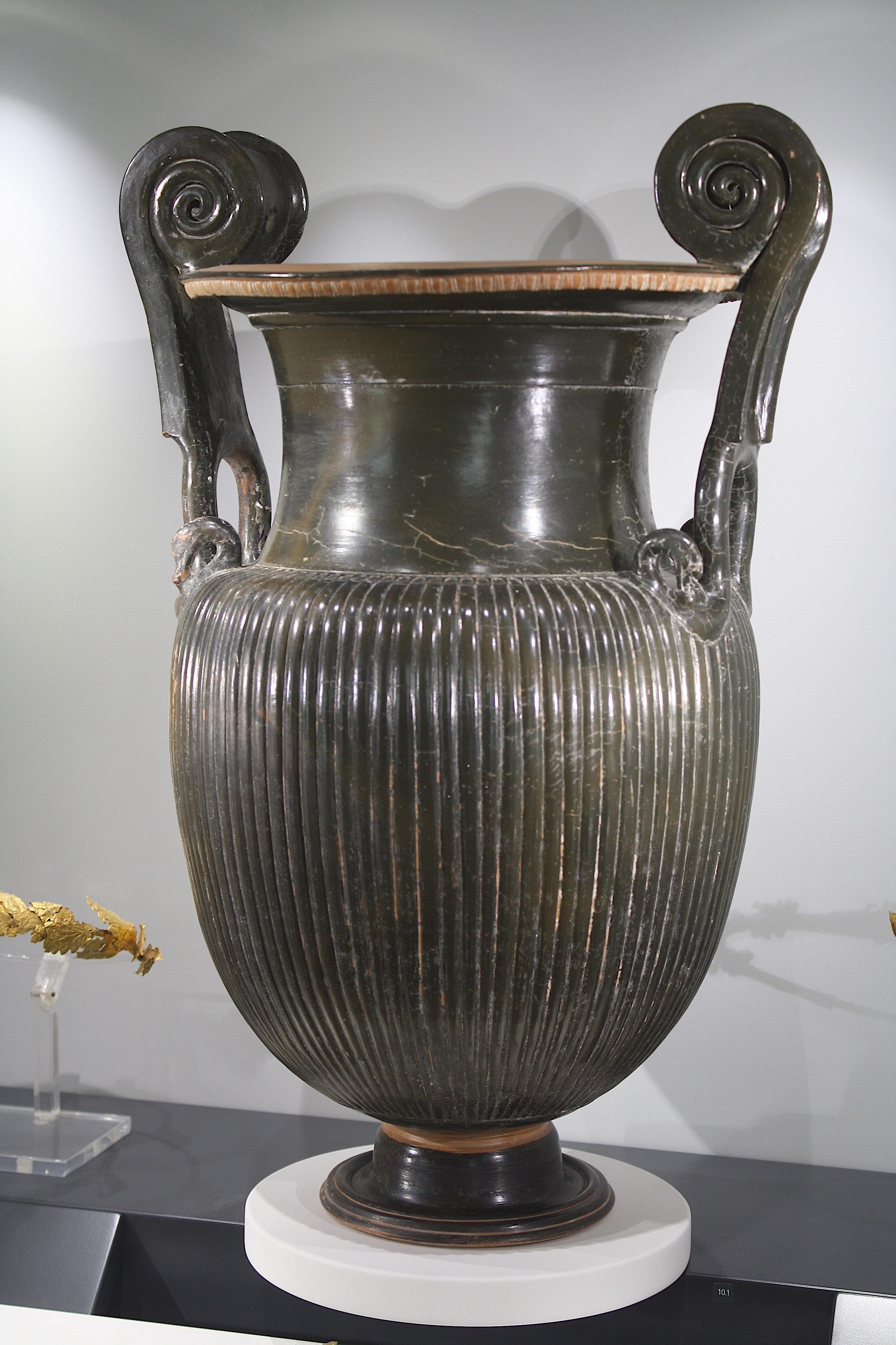 A black volute krater, Tarentum, southern Italy, 4th century BCE. (National Archaeological Museum of Taranto, Italy)
