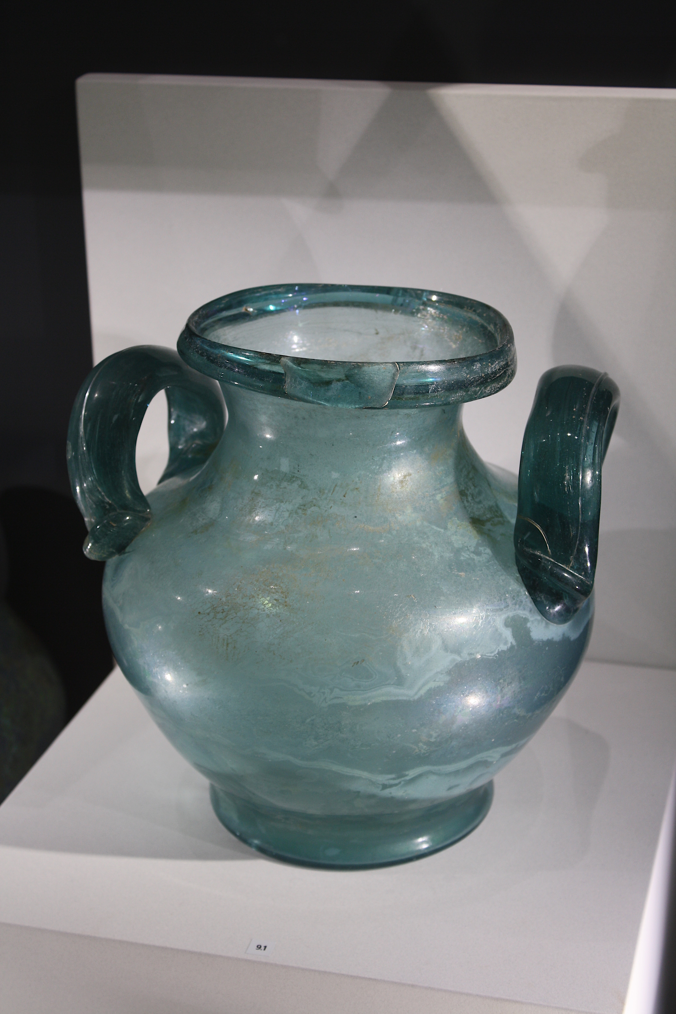 A glass funerary urn, Tarentum, southern Italy. 1st-2nd century CE. (National Archaeological Museum of Taranto, Italy)