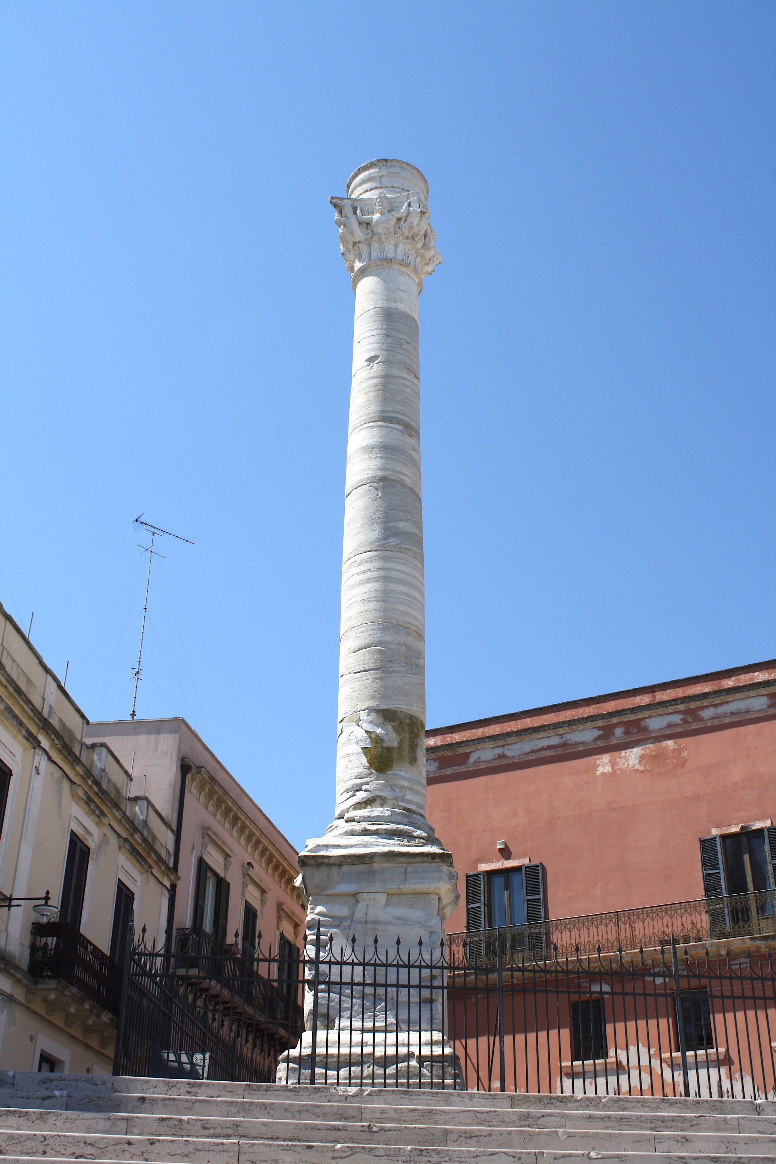 A 19.2 m marble column which dates to the 1st century BCE and was part of an honorary monument in Brindisum. Traditionally, the column was thought to mark the end of the Roman road the via Appia (Appian Way) but inscriptions on the column indicate a commemorative and religious function.