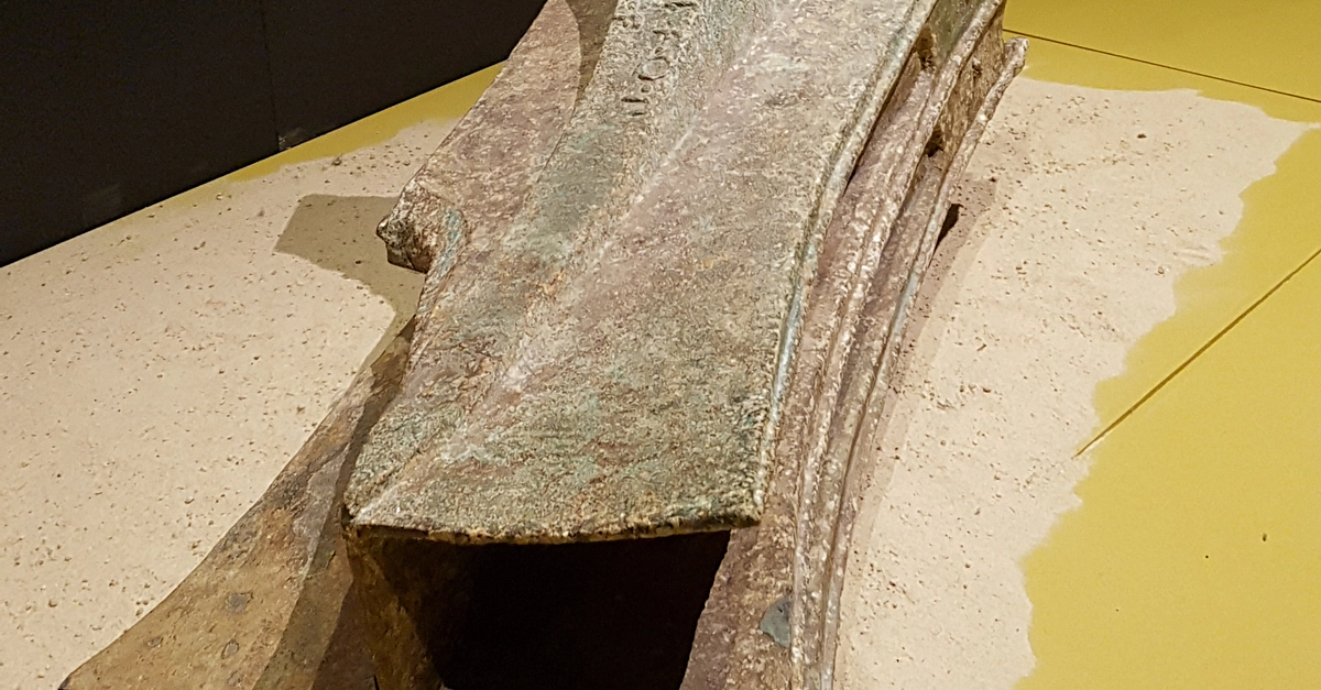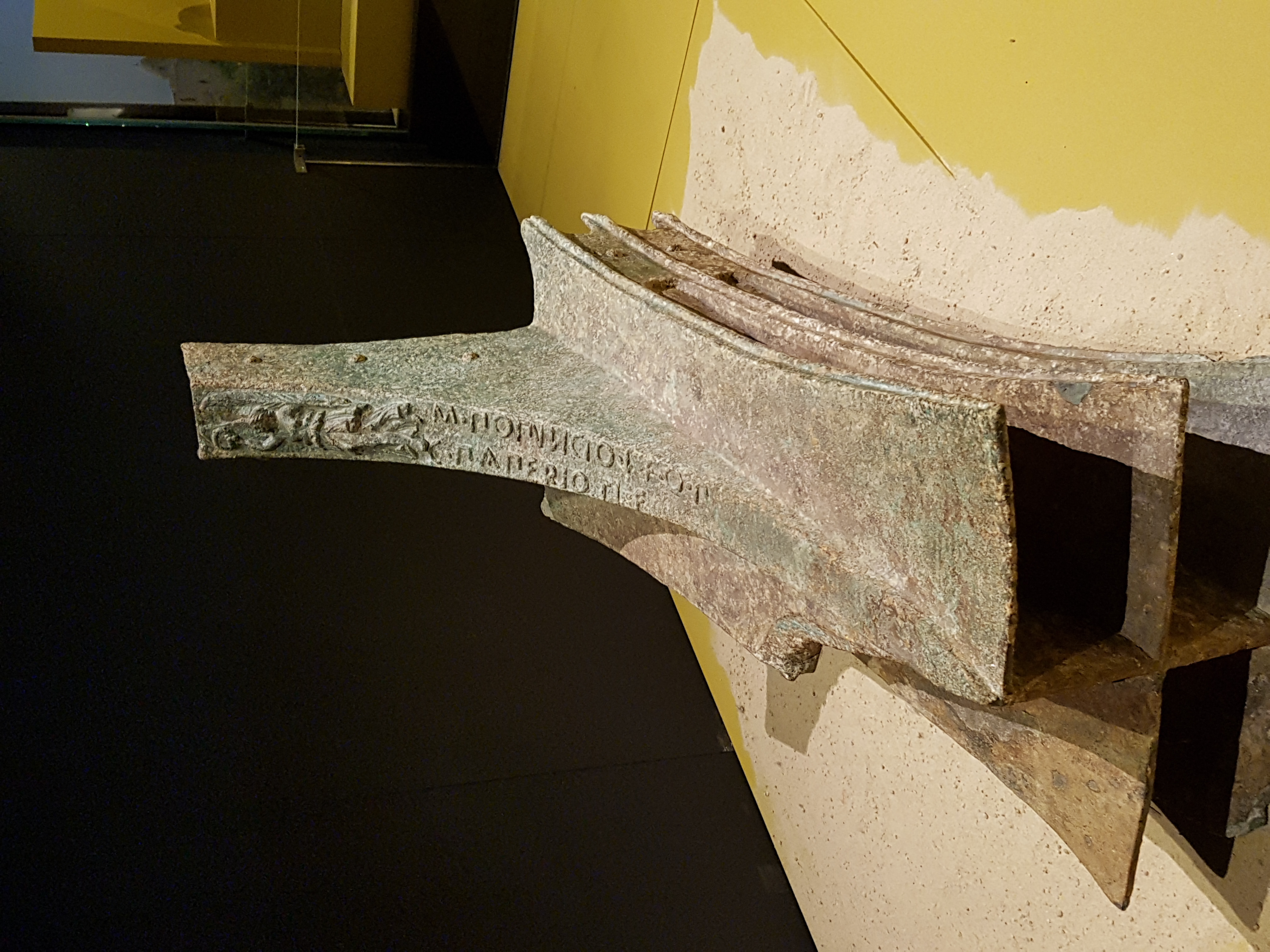 Rostrum from a Roman warship used in the Battle of the Aegates Islands. C. 250-241 BCE. Soprintendenza del Mare, (National Maritime Museum, Sydney Australia). Eleven rostra have been recovered so far from the site of the Battle of the Aegates Islands fought on 10 March 241 BCE. This one bears an image of the goddess Victory and, in archaic Latin script, the names of the two Roman magistrates (quaestors), who approved its manufacture - Gaius Papirius and Marcus Publicius.