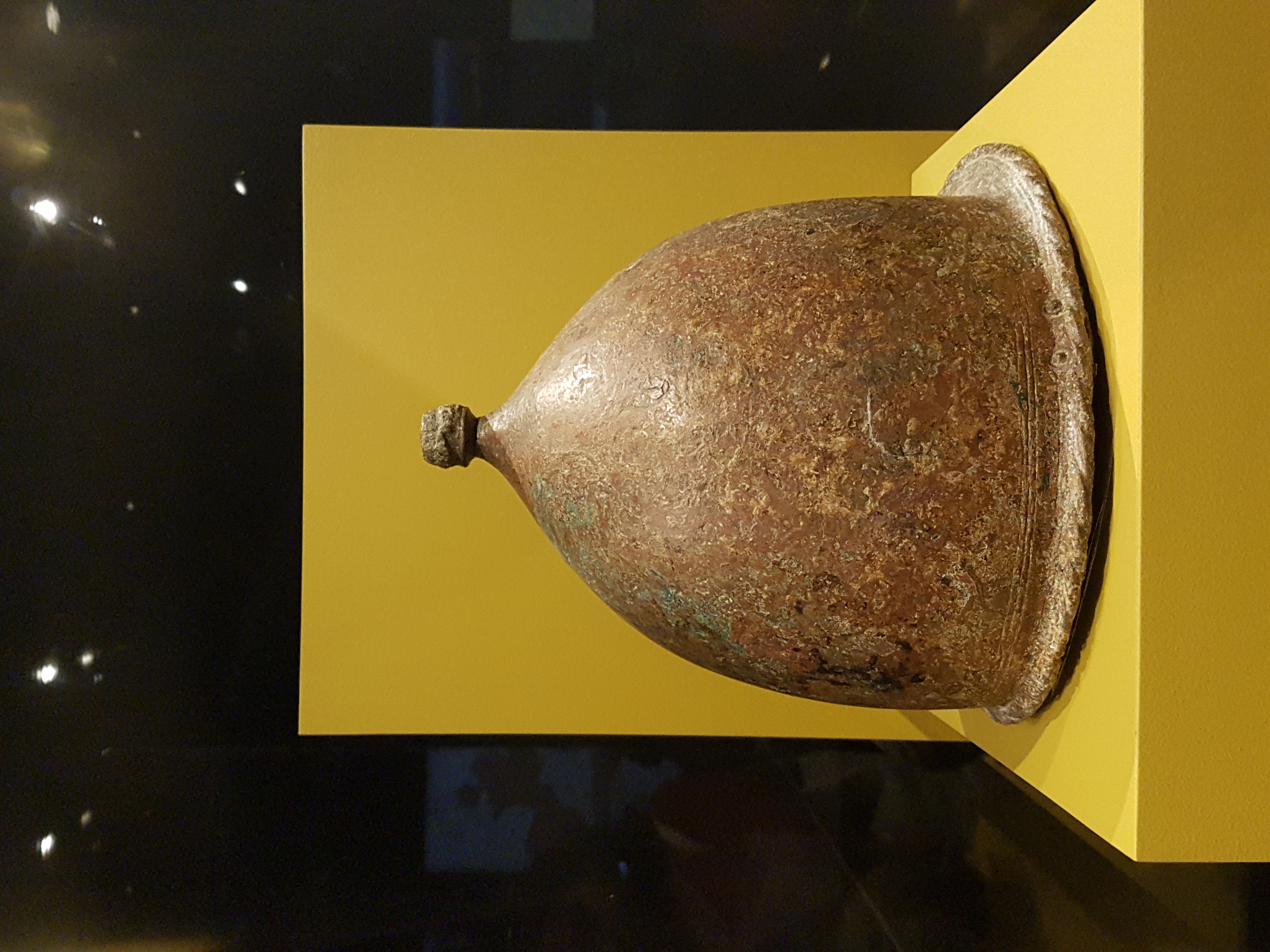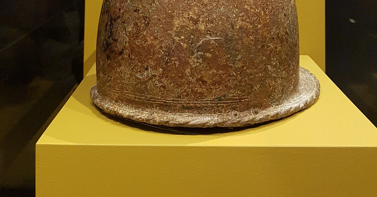 An iron helmet from the Battle of the Aegates Islands. 241 BCE. Soprintendenza del Mare, (National Maritime Museum, Sydney Australia)