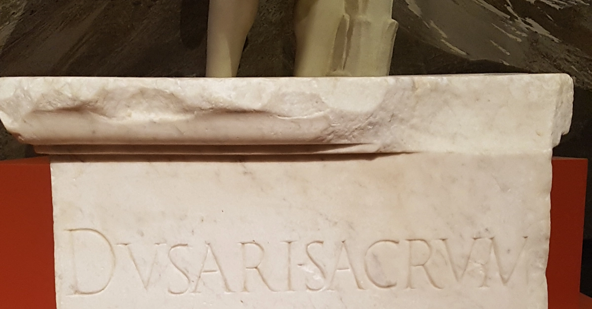 Marble altar sacred to Dushares Puteoli. 1st century CE. Museo dei Campo Flegrei, (National Maritime Museum, Sydney Australia). A beautiful piece of Italian Carrrara marble fashioned into an altar to Dushares, a god of the Nabateans from Petra (Jordan), but inscribed in Latin. The Nabateans established a trading colony at Puteoli, building a temple there in 50 BCE.