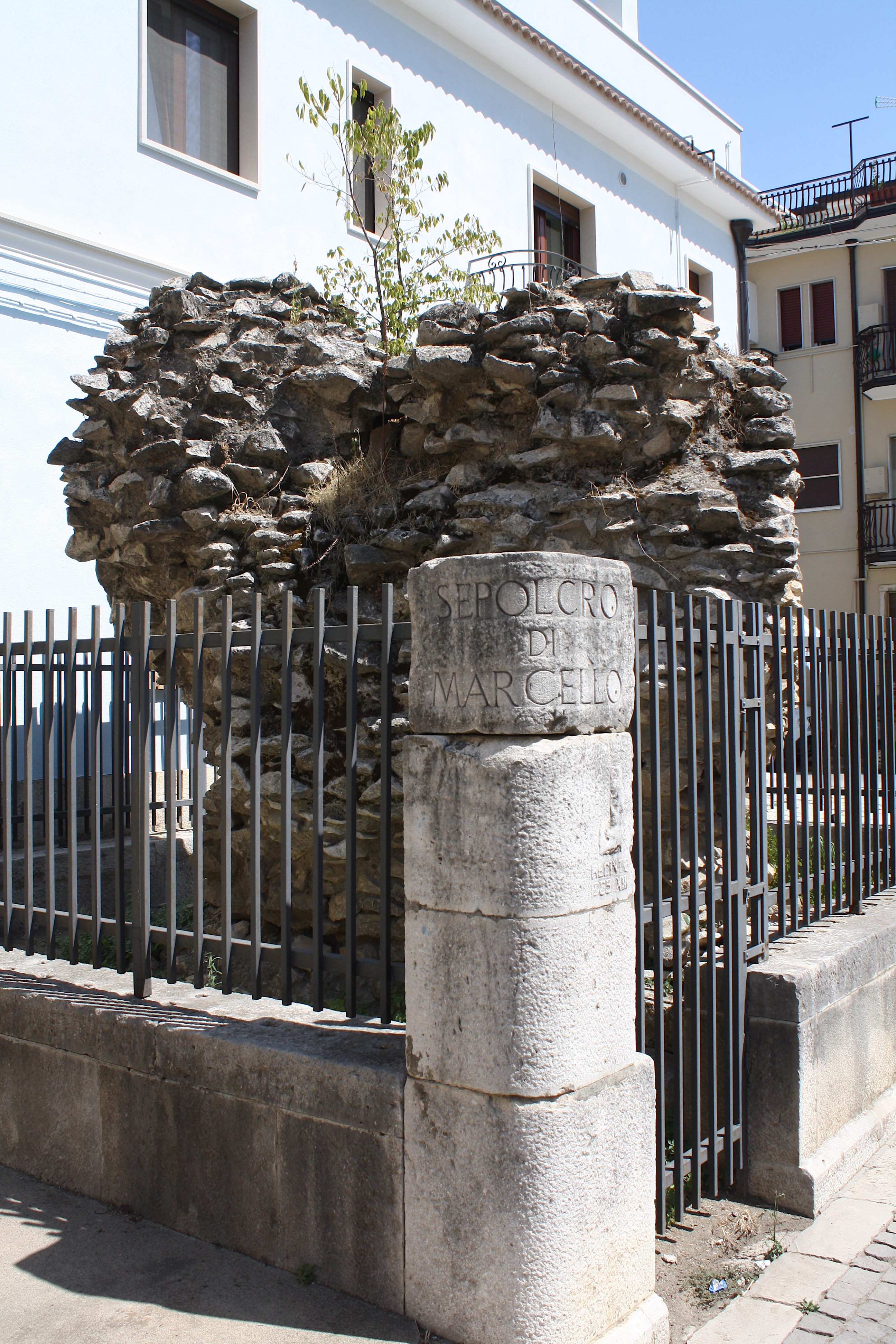 The remains of the tomb marker of Roman commander Marcus Claudius Marcellus who was killed in an ambush in the town in 208 BCE. Venusia, modern Venosa, southern Italy.