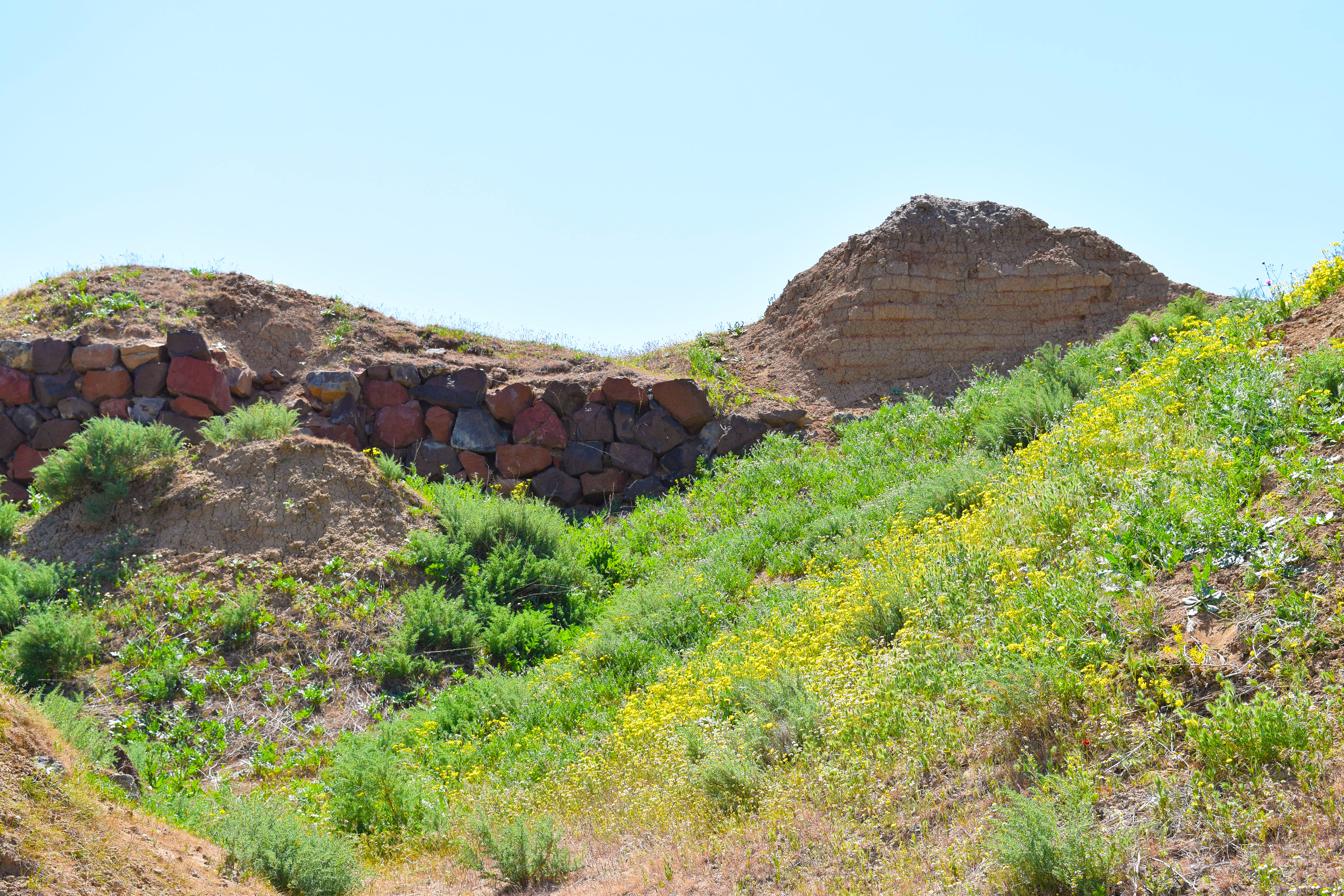 Surrounded by defensive walls - in parts up to 15 m (49 ft) in height and 3-4 m (10-13 ft) in width - Erebuni was accessible from an eastern entrance, which offered strategic views of the three-range defensive walls in addition to the Ararat Plain.