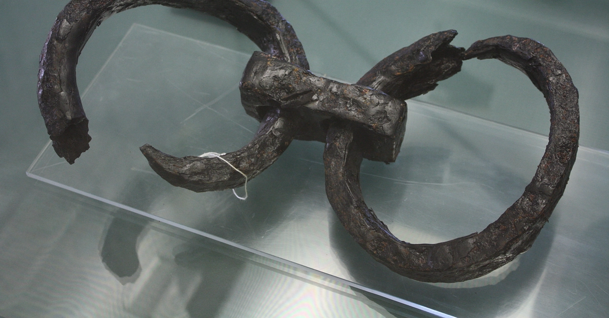 Bronze slave handcuffs from the Greek colony of Heraclea in southern Italy. 4th-2nd century BCE. (Archaeological Museum, Policoro, Italy)