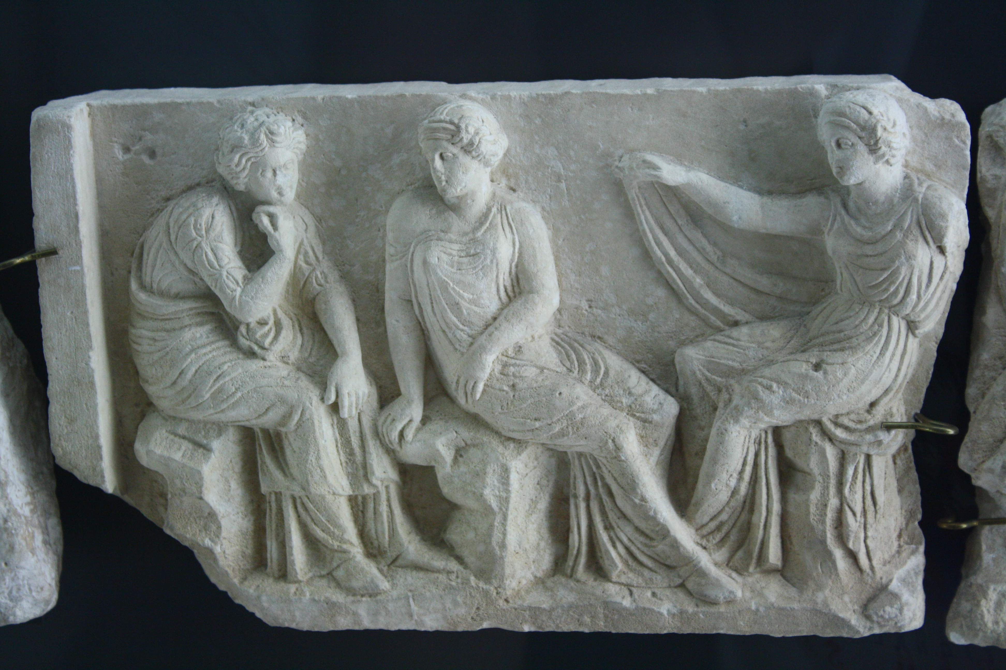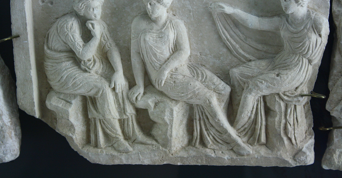 A marble relief from a funerary monument depicting seated women. 4th century BCE, Tarentum. (Archaeological Museum of Taranto, Italy)