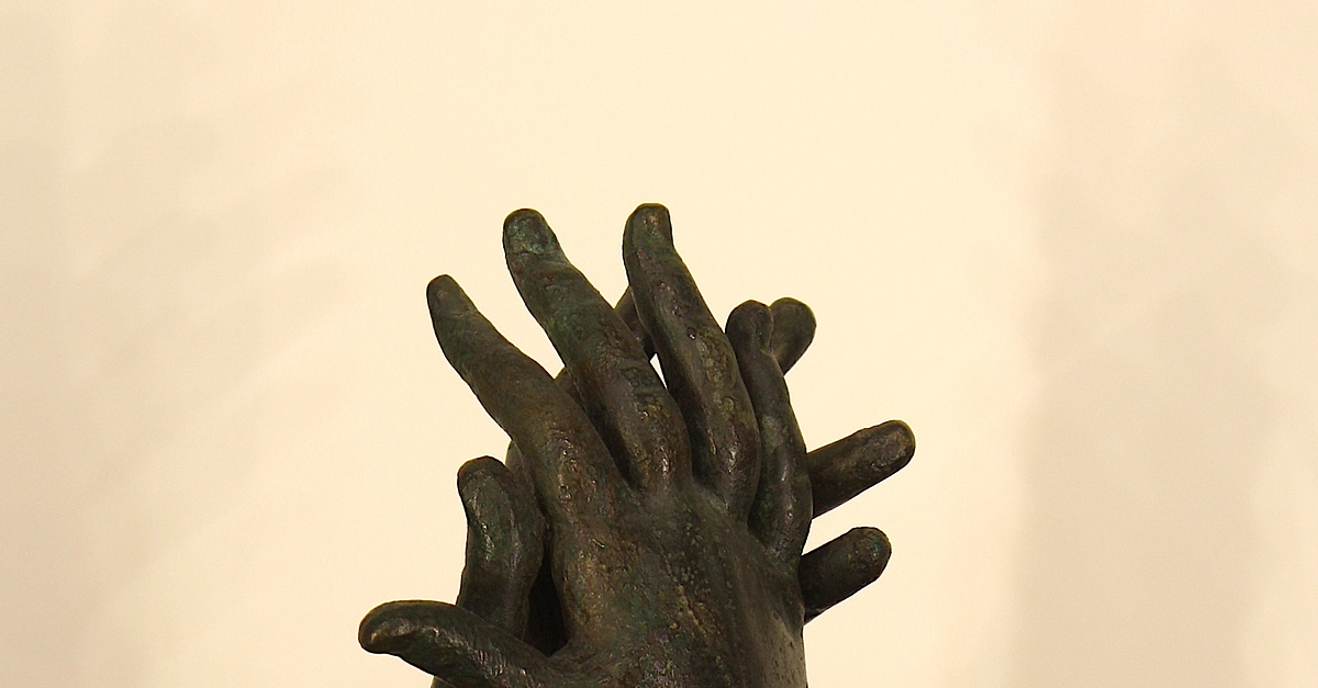 A nutcracker in the form of bronze hands with gold decoration. 4th-3rd century BCE, Tarentum. (Archaeological Museum of Taranto, Italy)