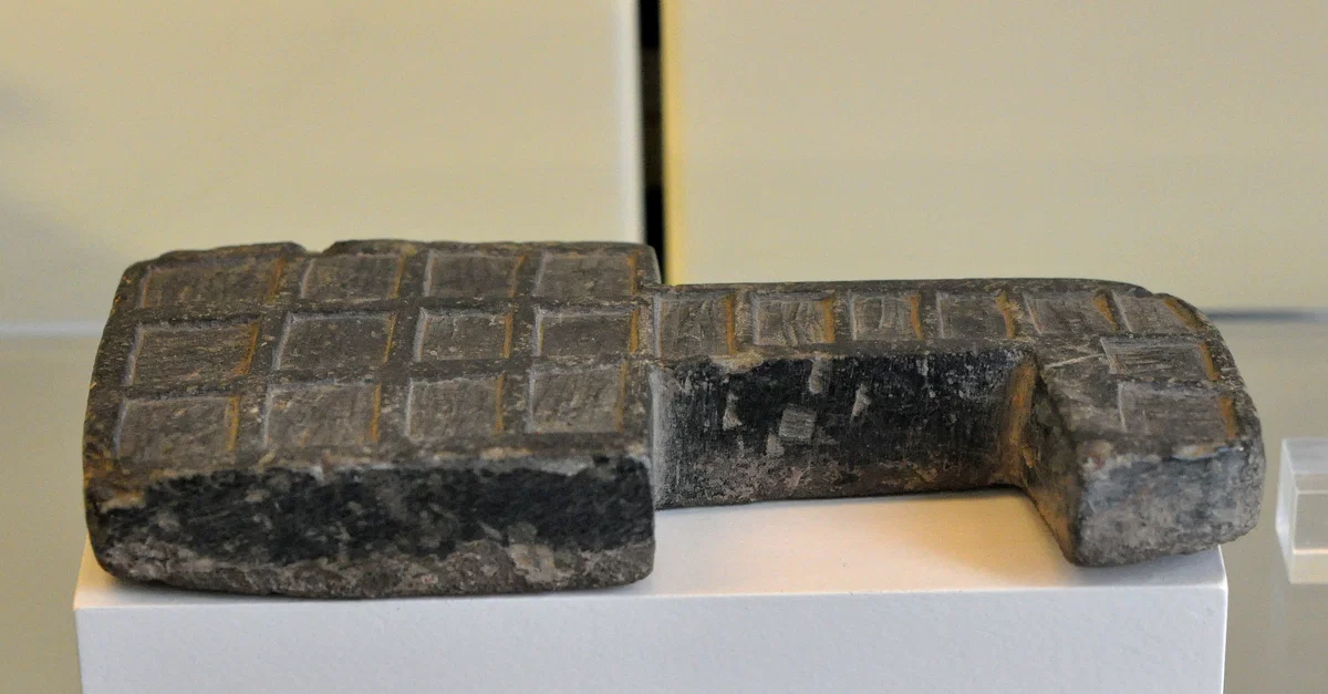 This board game is made of serpentine. 9th to 7th century BCE. From Sam'al/Zincirli, modern-day Southern Turkey. (Pergamon Museum, Berlin)