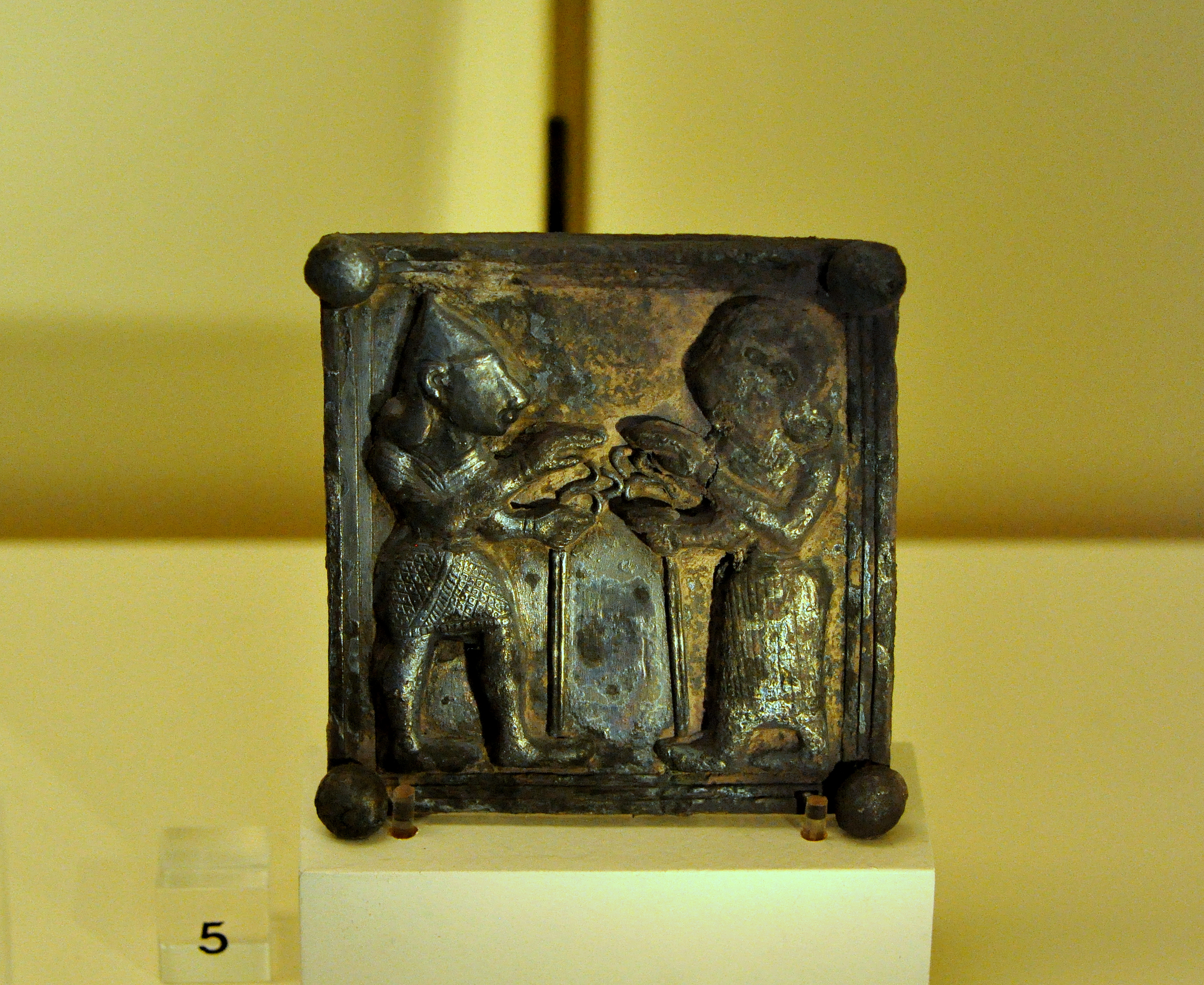 Silver plate depicting a ritual scene, from Sam'al/Zincirli, modern-day Southern Turkey, 9th-7th century BCE.