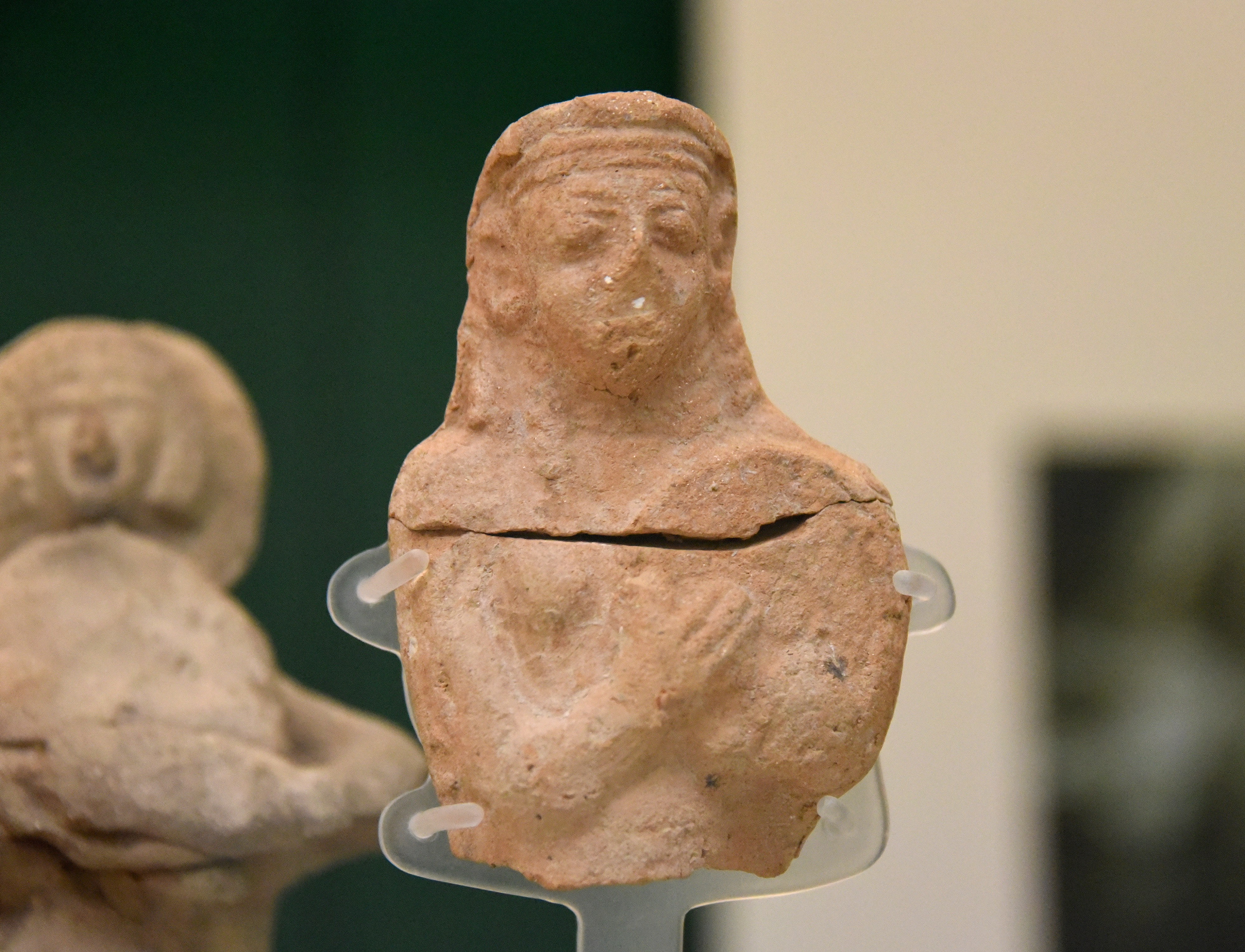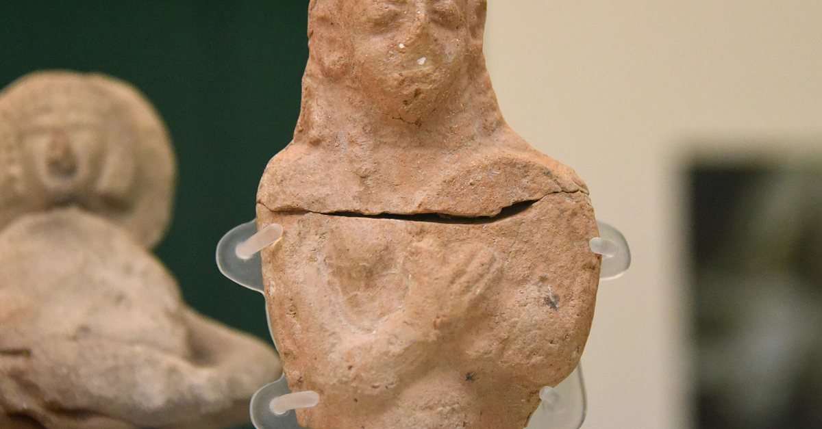 This female figurine of a tambourine player is part of a group of similar clay figurines found in Tell es-Sa'idiyeh and Tell Jemmeh, modern-day Israel. Pottery female musicians of this sort probably formed part of a toy band. Iron II, 9th century BCE. (The British Museum, London)